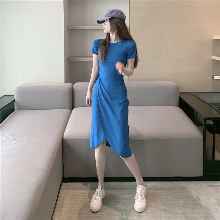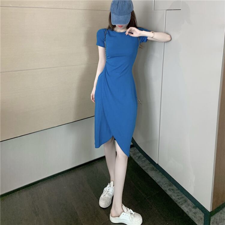 ショートスカート 半袖 ハーフスリーブ Oネック ハンチェンe24353120638
