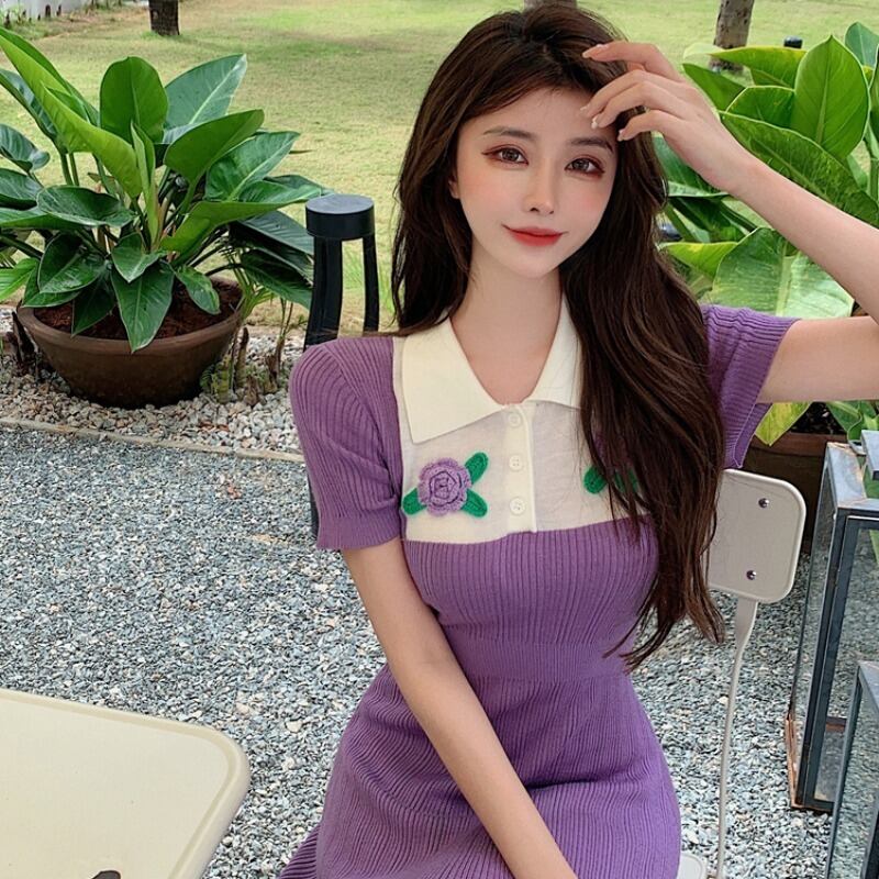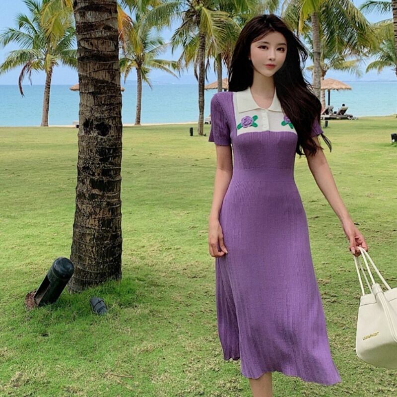 ニットドレス サマースタイルウェストスカート 夏物 ハンチェンe50974535377
