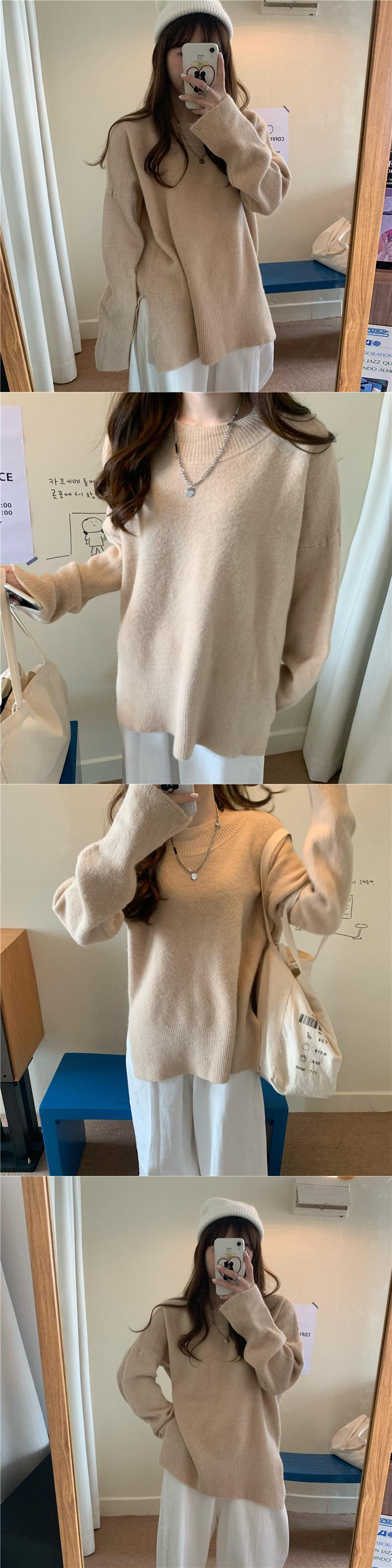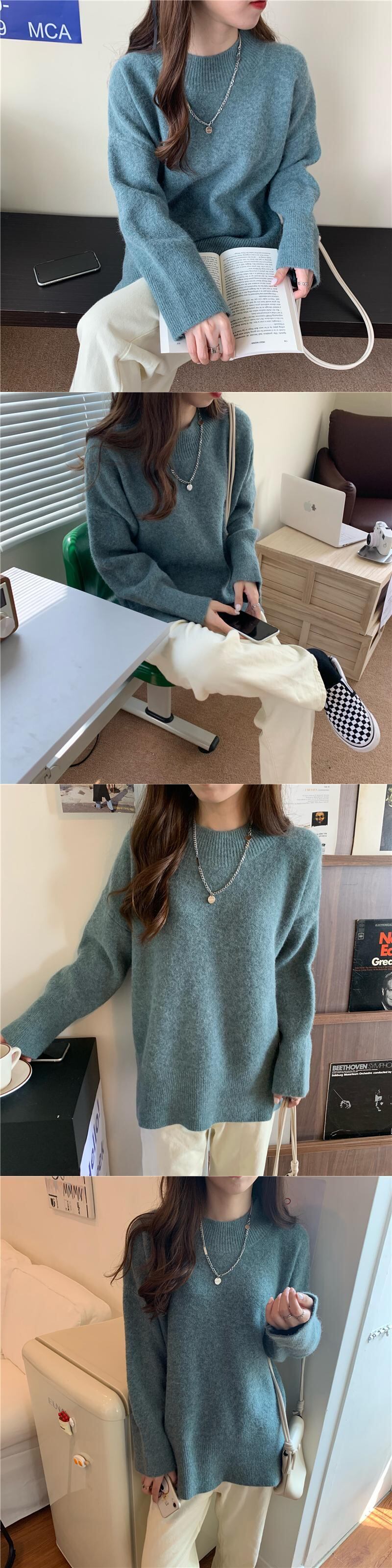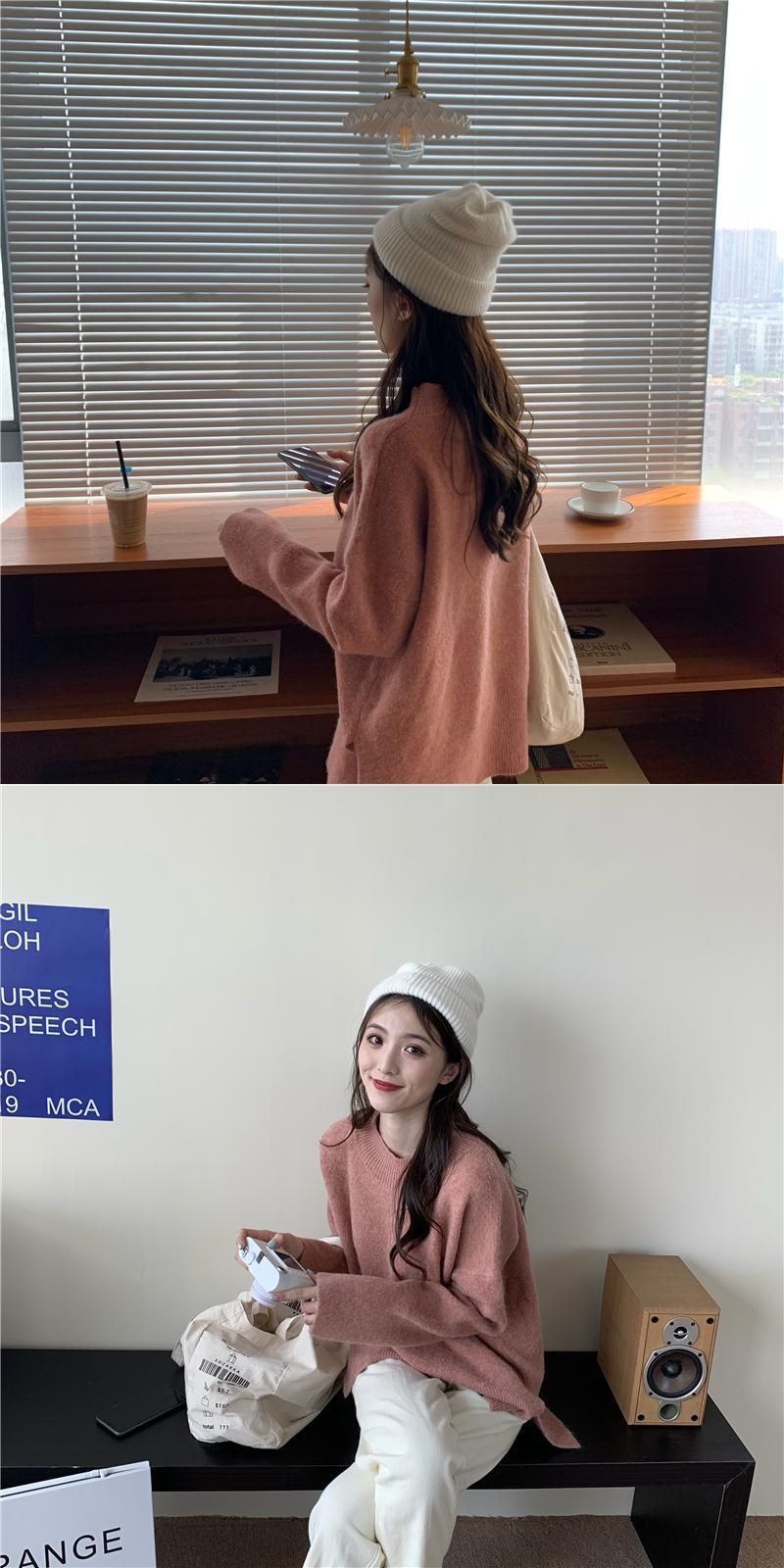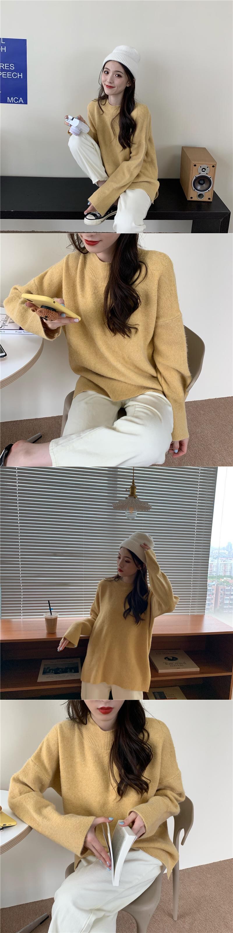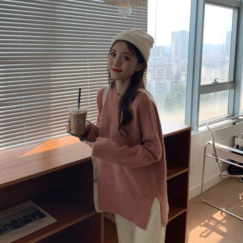 ルーズ薄手ラウンドネックプルオーバー セーター オータムカラートップス ロング 秋物 Oネック ハンチェンe22887017557