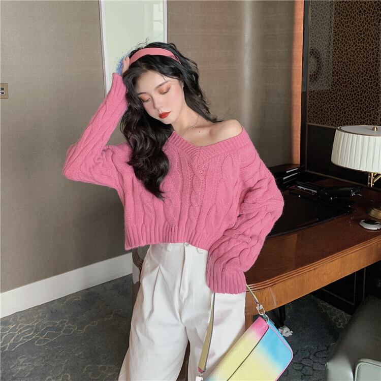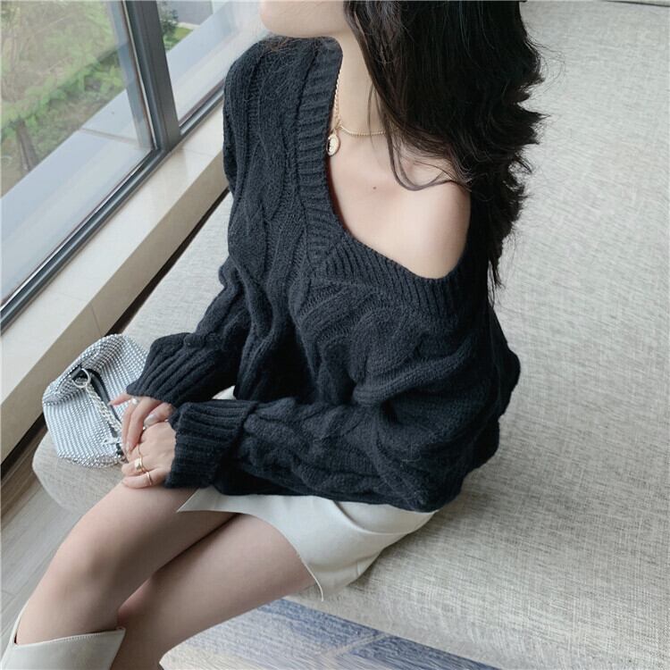 オータム薄手スタンダードスタイルニットシャツ ルーズショートセーター ロング レトロ 秋物 ハンチェンe1574296996