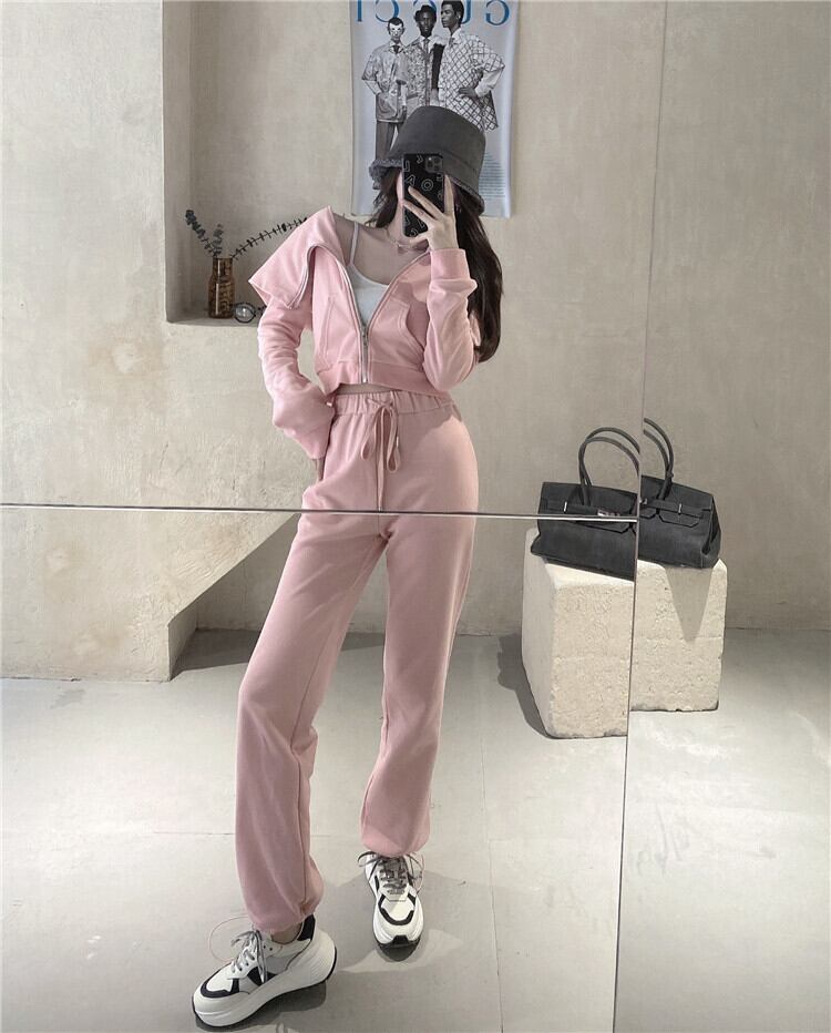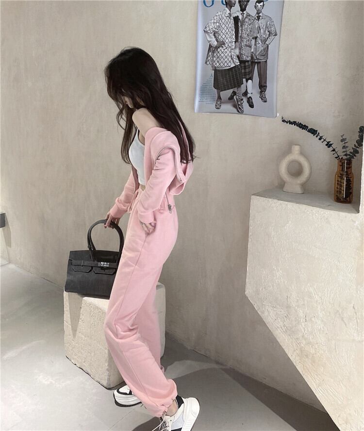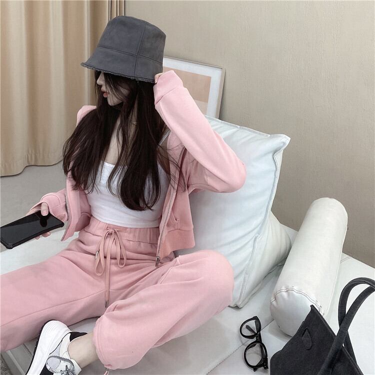 オータムジッパーフードトップス カジュアルハイウェスト 秋物 ハンチェンe1905718521