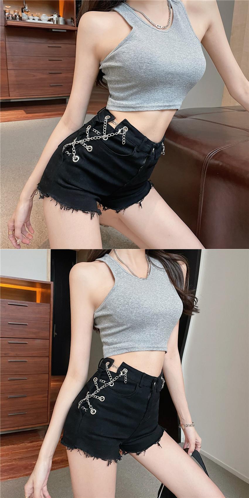 ショートジーンズ サマーハイウェストウェストルーズパンツ 夏物 ハンチェンe99780260916