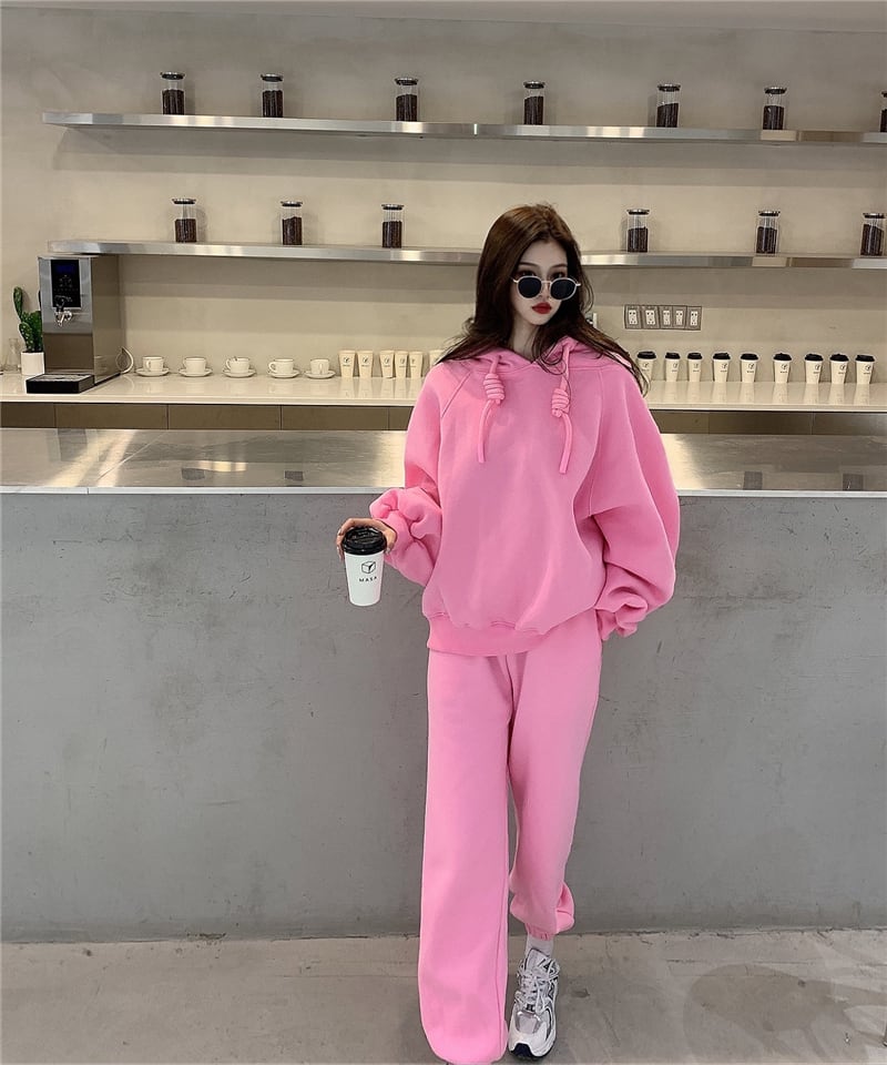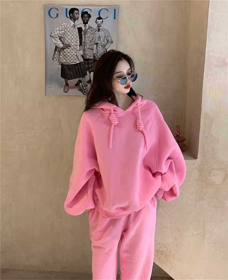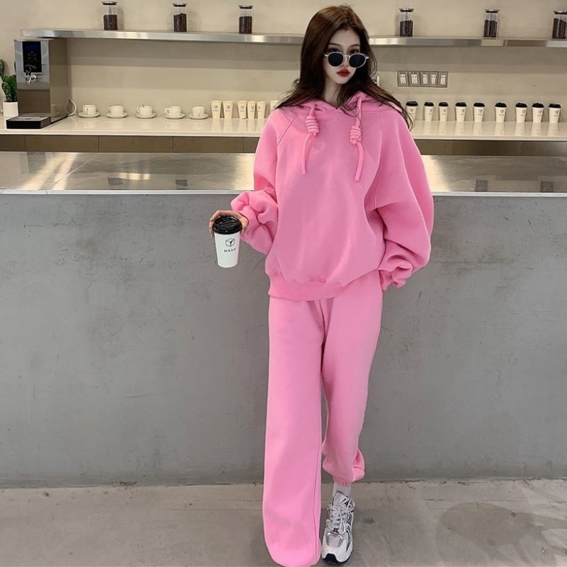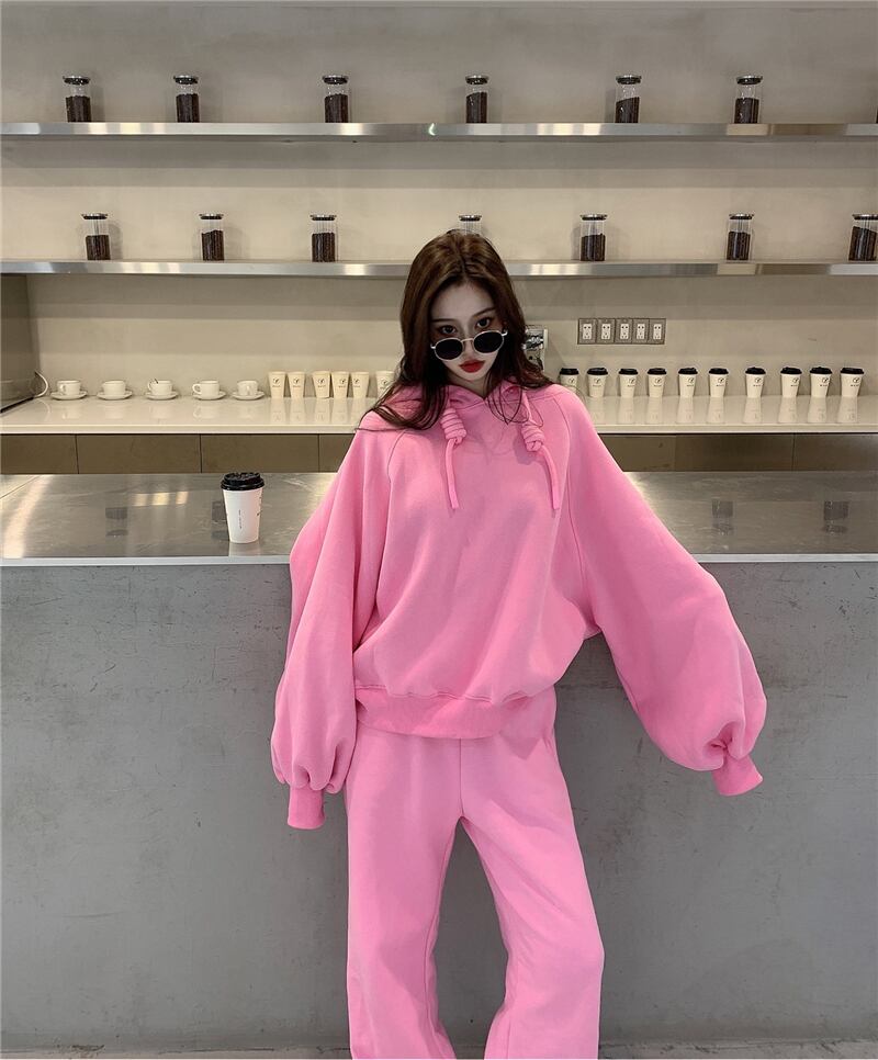 フードセーター ルーズオータムウィンタースタイルベルベットジャケット パンツ レディース 秋物 冬物 ハンチェンe1561755328