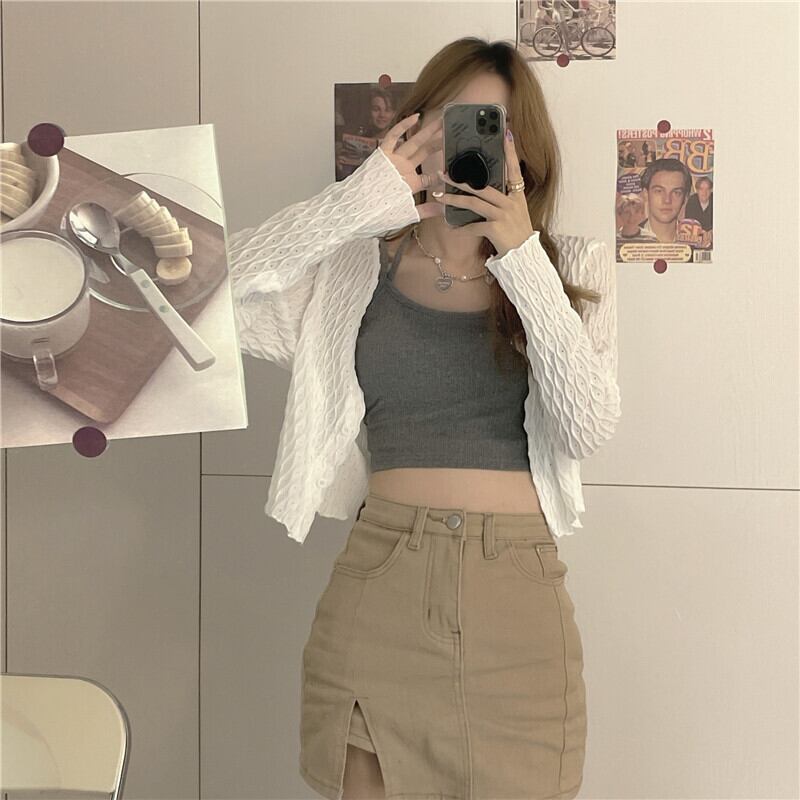 ショートカーディガンジャケット スリム薄手ブラウス レディース ハンチェンe23805604754