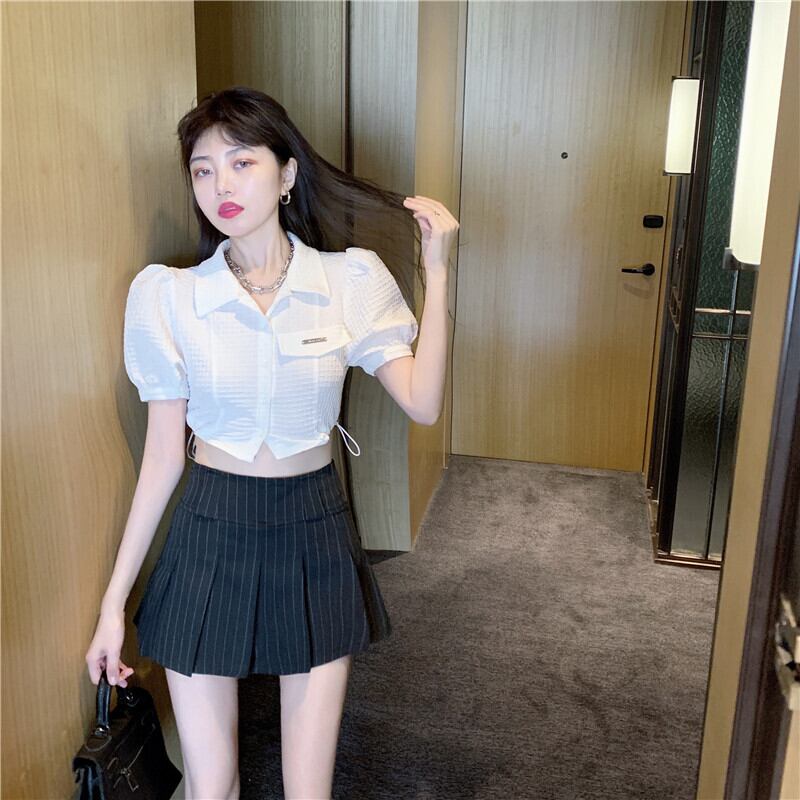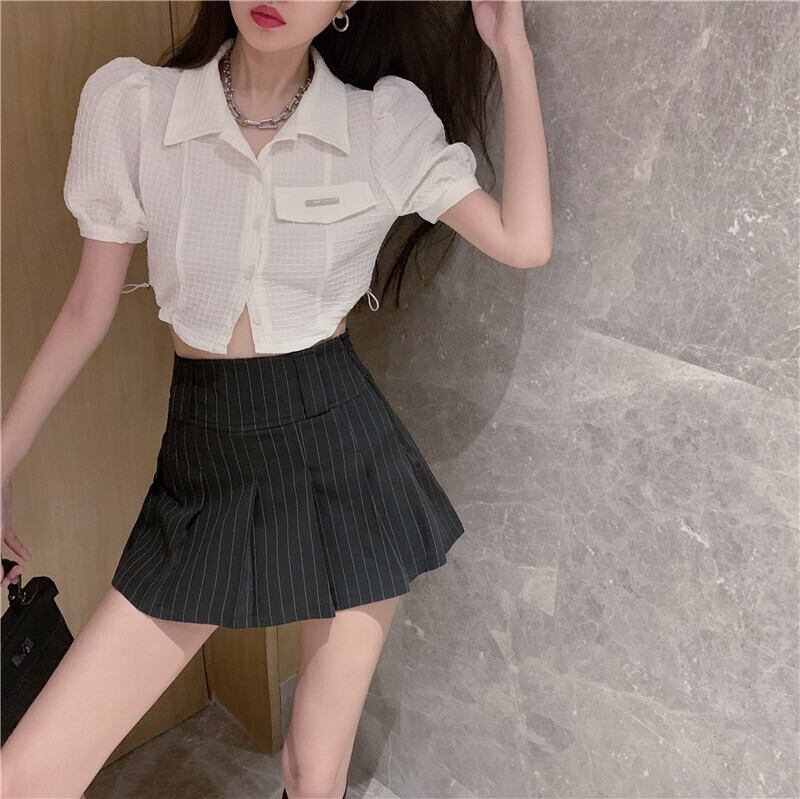 スリーブシャツ ハイウェストウェストストライププリーツスカート ハンチェンe82127839393