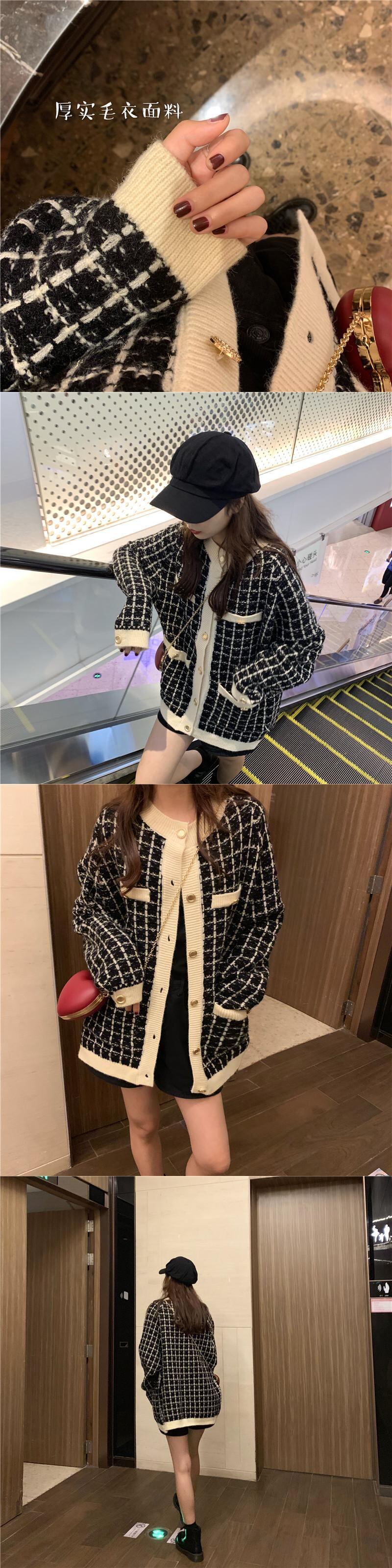 オータム薄手スタイルカラールーズラウンドネック格子柄ジャケット レディース ロング 秋物 Oネック ハンチェンe9957851846