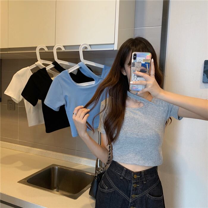ショートトップス サマースリムTシャツ 夏物 ハンチェンe16690701510