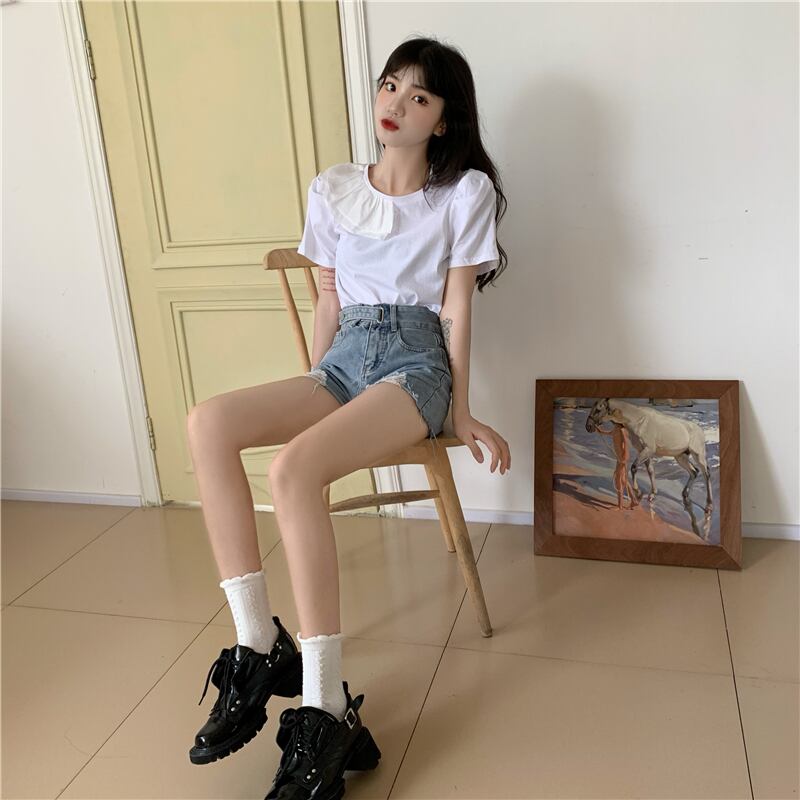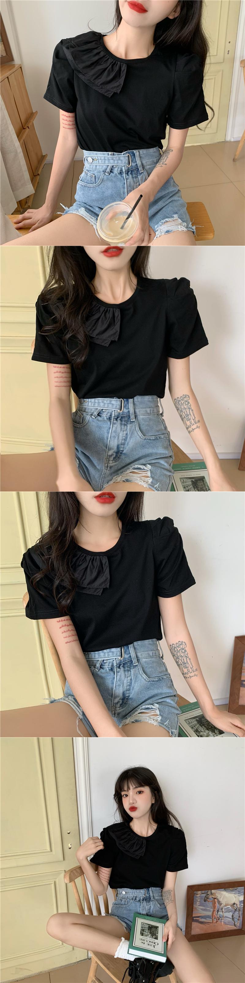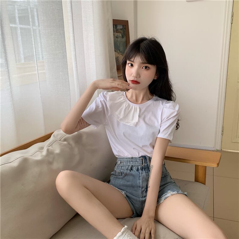 ラウンドネックソリッド カラーTシャツ レディースサマートップス 夏物 Oネック ソリッドカラー ステッチ ハンチェンe13476515466