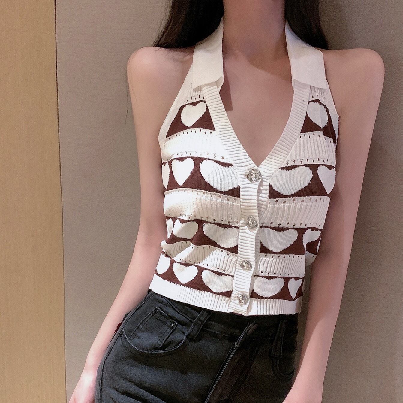 ニットサマースタイルスタンダードストラップレスショートノースリーブトップス レトロ 半袖 ハーフスリーブ 大人ガーリー スウィート キュート カジュアル 夏物 ハンチェンe97544115706