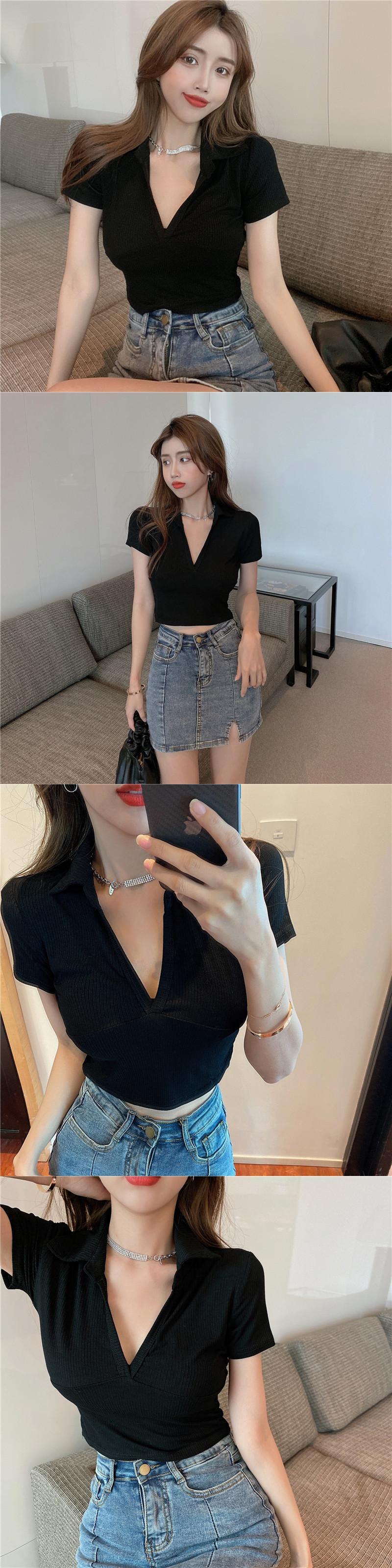 サマースタイルVネックスリムTシャツ トップス 夏物 ハンチェンe61730124062