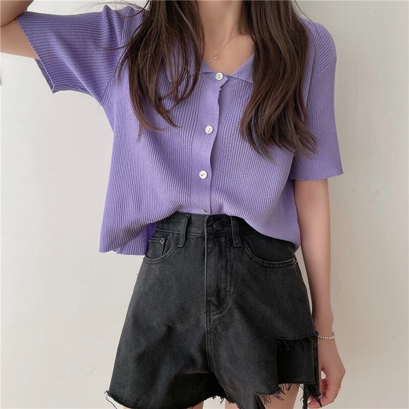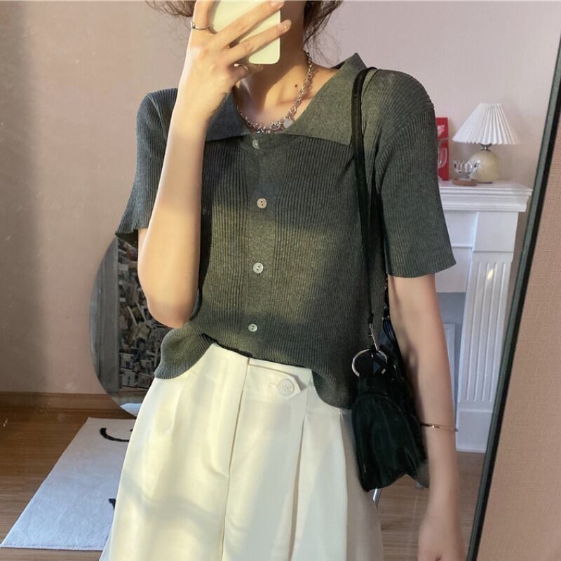 サマースタイルショートルーズ薄手ソリッド カラーニットカーディガンジャケット レディース 夏物 ソリッドカラー ハンチェンe39158864490