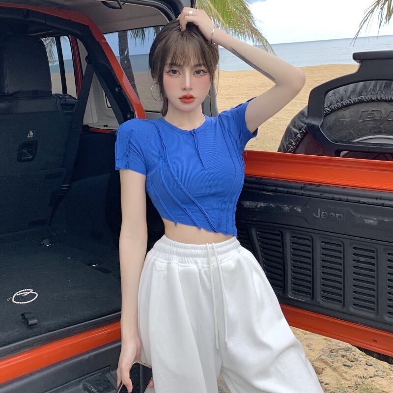 サマークロップドショートトップス カジュアルパンツ 夏物 ハンチェンe97118834726
