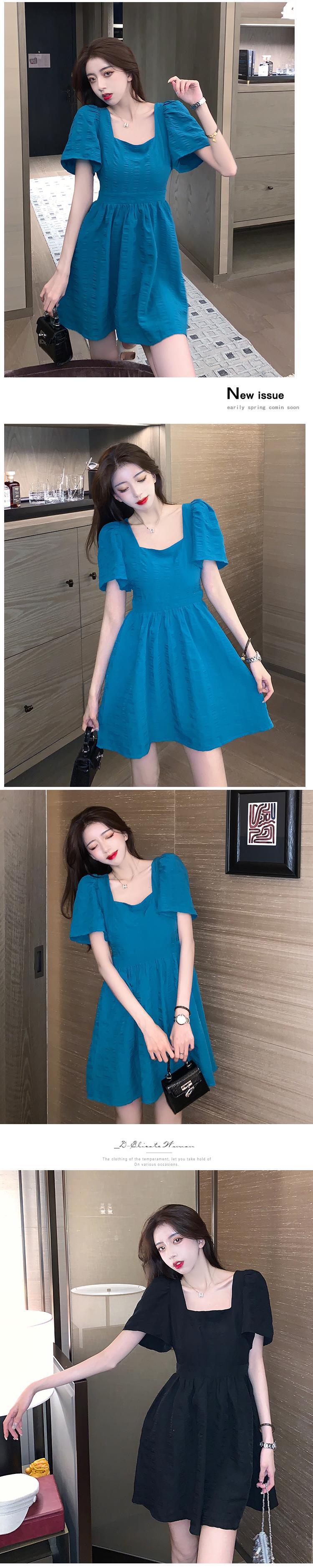 サマースタイルホルタースリーブカラーウェストドレス レディース 夏物 スクウェア ハンチェンe29301567607