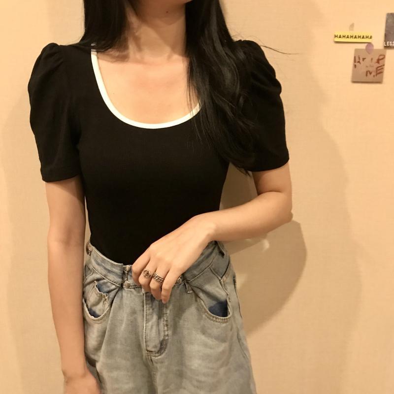 サマースタイルラウンドネックスリムカラーTシャツ トップス 夏物 Oネック ハンチェンe14545247558