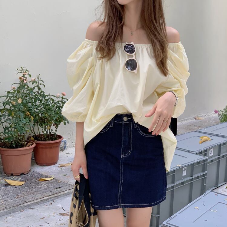 サマースタイルシャツ トップス レディース 夏物 オフショルダー ハンチェンe50713242565