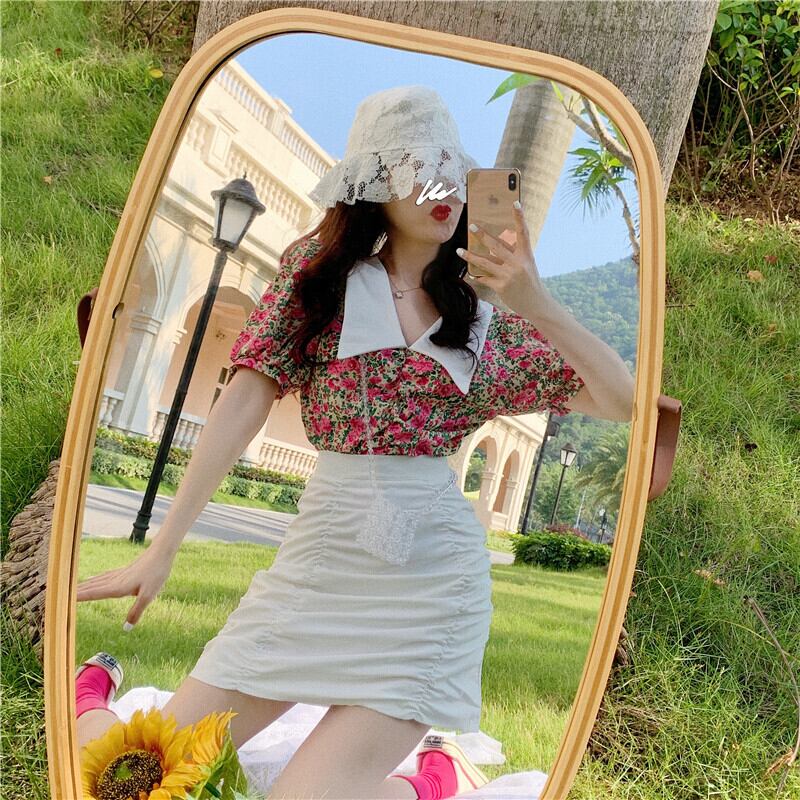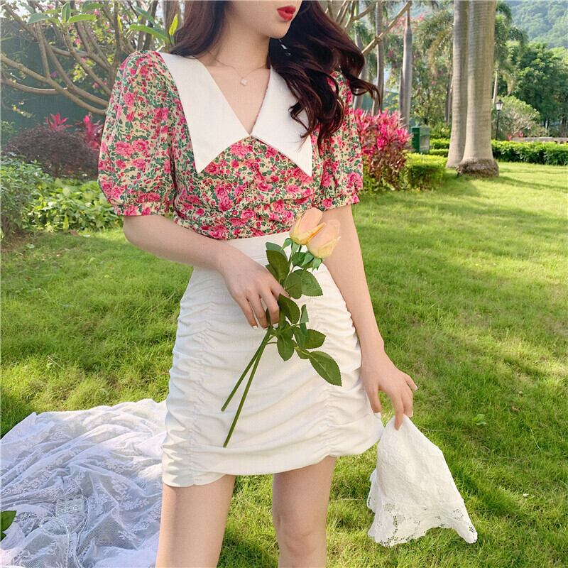 サマースタイルフローラルシャツ ハイウェストスカート 夏物 花柄 ハンチェンe37037927948