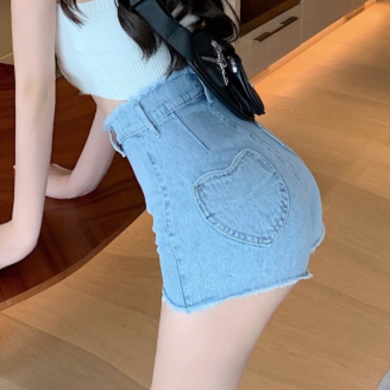 ショートジーンズ サマーハイウェストウェストルーズパンツ 夏物 ハンチェンe18391104727