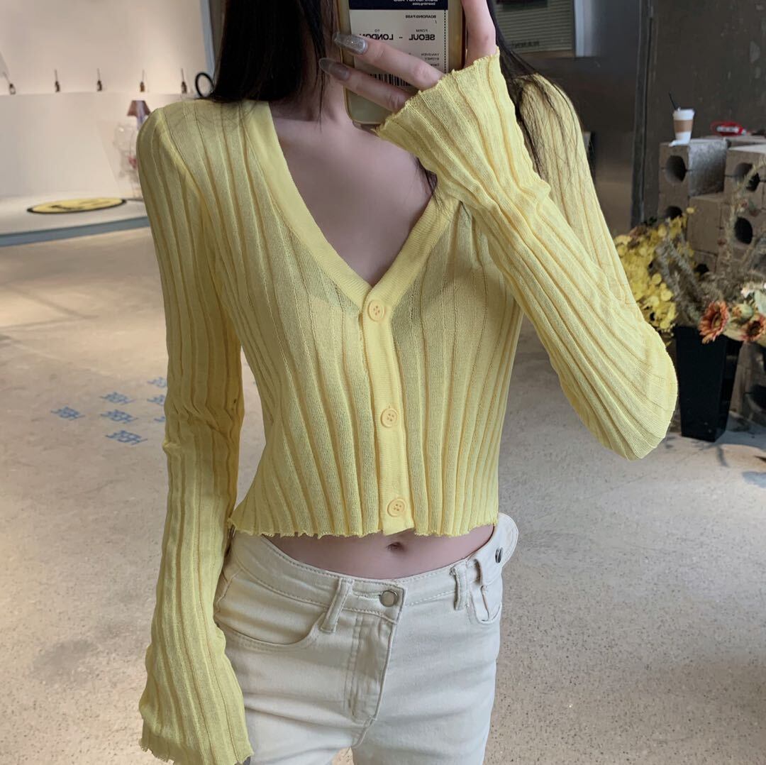 薄手ニットトップス レディースサマースタイルVネックカーディガン ロング 夏物 シルク ハンチェンe26357352876