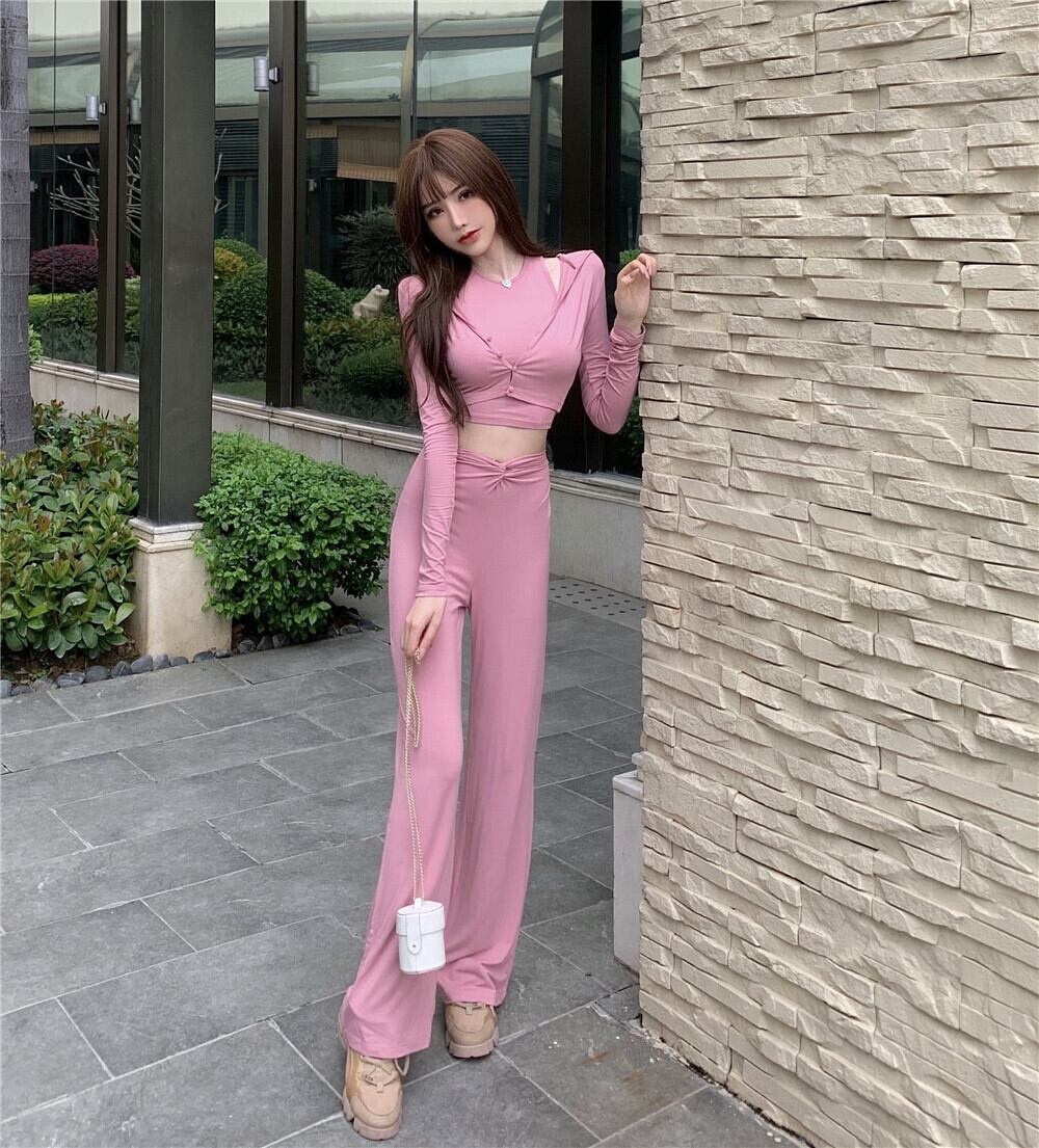 スタイルオータムフードカーディガンハイウェストパンツ ロング 秋物 ハンチェンe74830967408