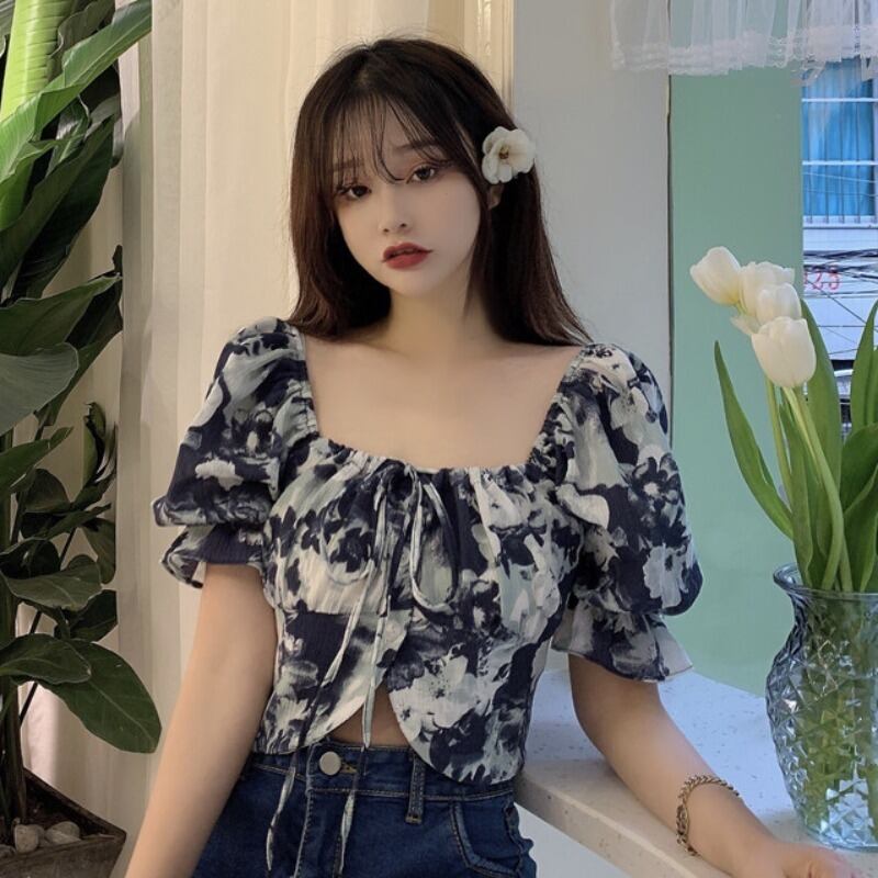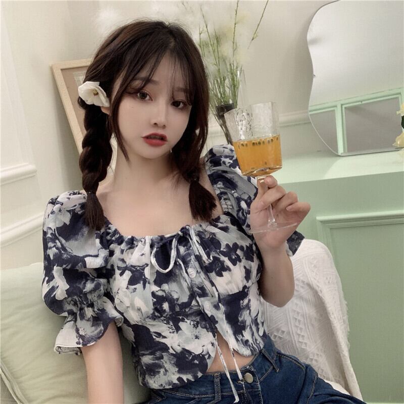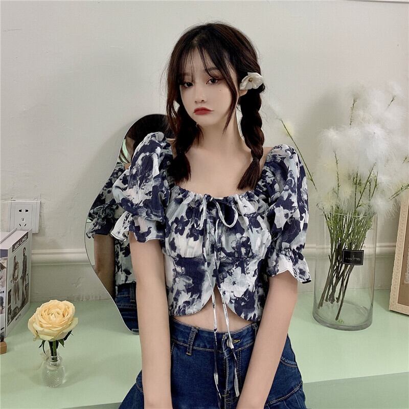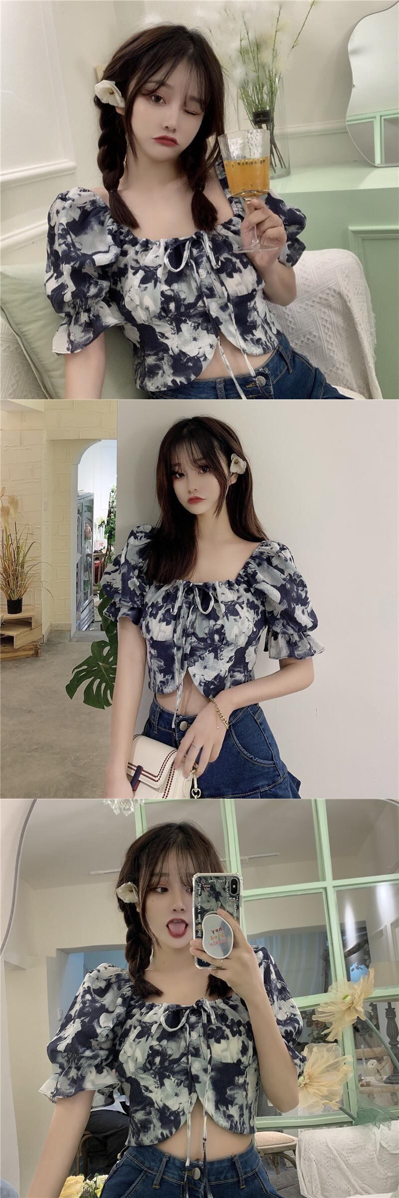 サマースタイルスリムプリント柄シャツ トップス レディース 夏物 ハンチェンe80332405983
