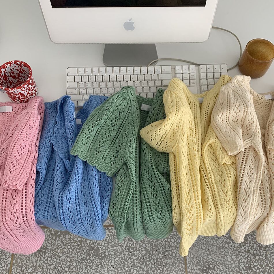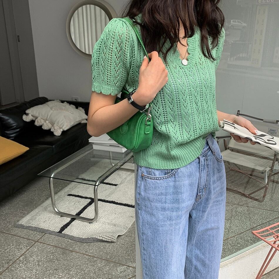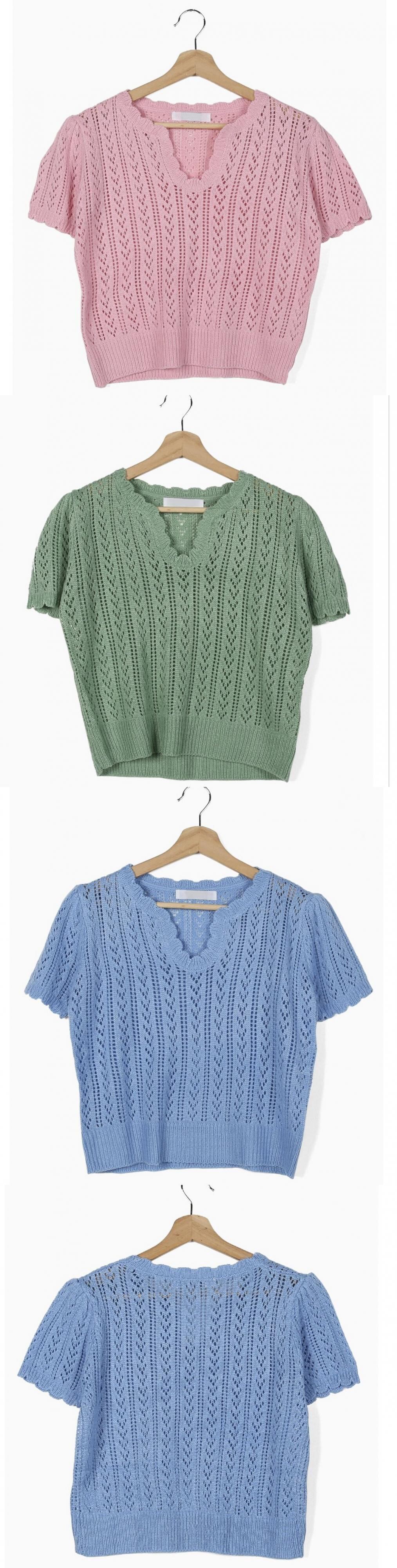 サマーVネック薄手ニットトップス レディース 夏物 ハンチェンe53562017462