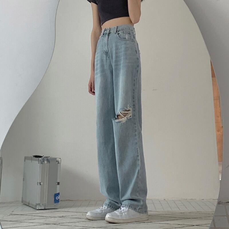 ジーンズ サマースタイルハイウェストルーズ薄手ワイドレッグパンツ 夏物 ワイドパンツ ハンチェンe667939566