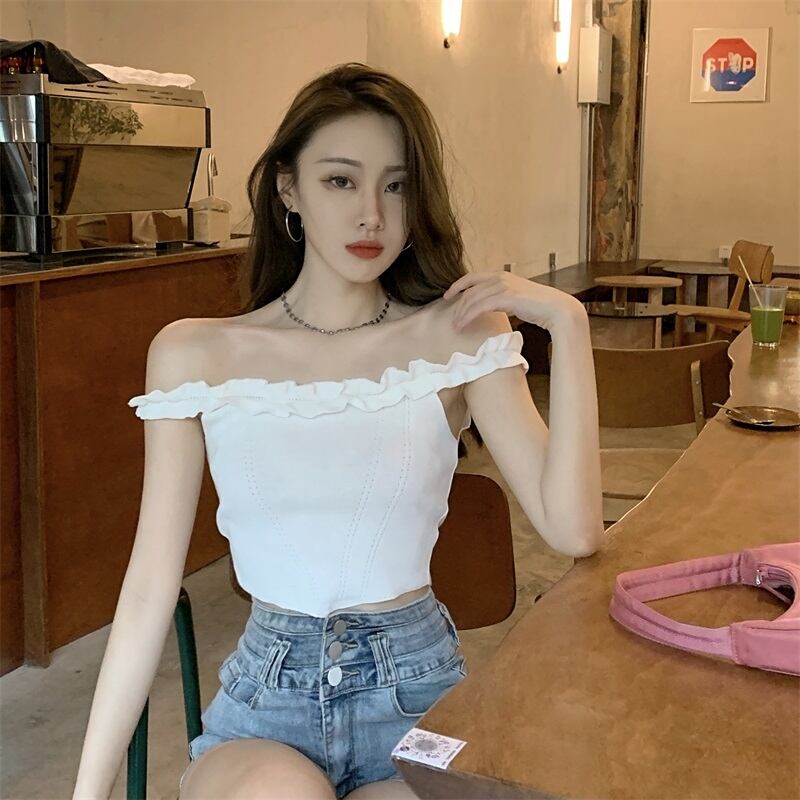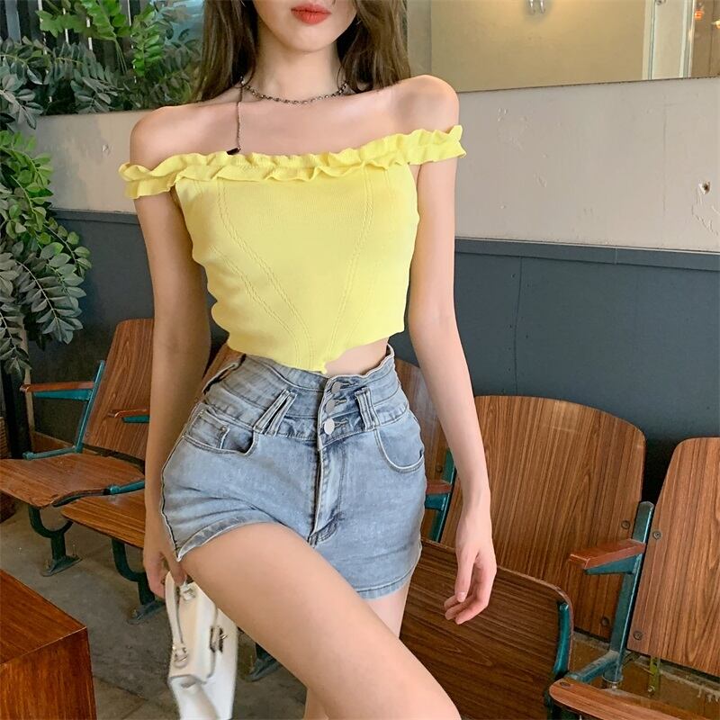 ニットサマースタイルカラー薄手ブラウス レディース 夏物 オフショルダー ピュア ハンチェンe27206156256