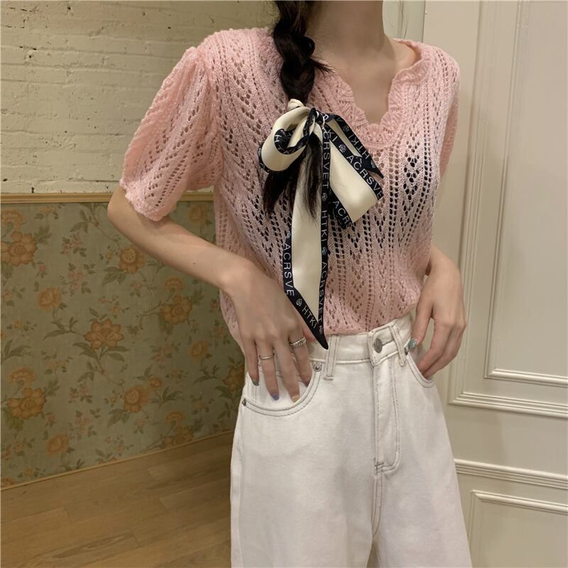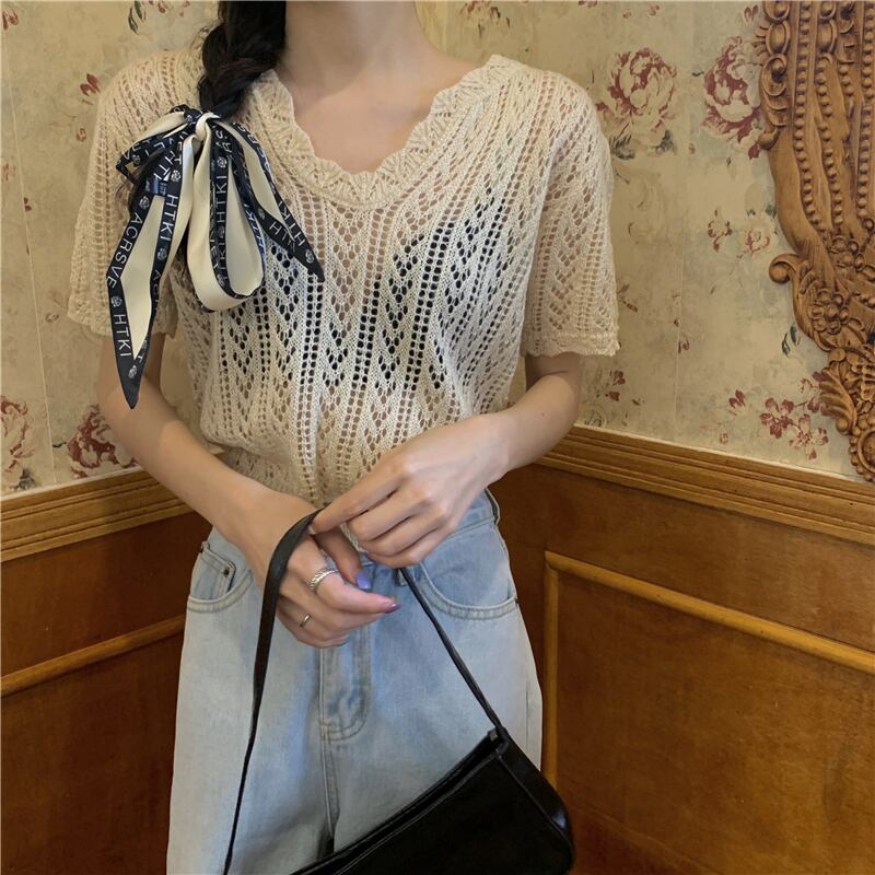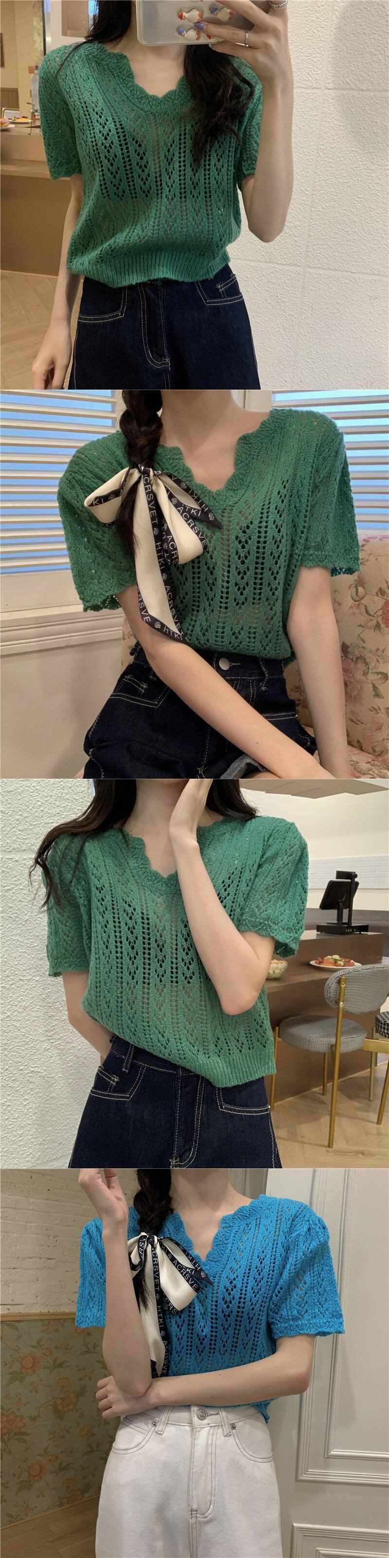 スタイル薄手ニットセーター Vネックブラウス レディース ハンチェンe21379948383