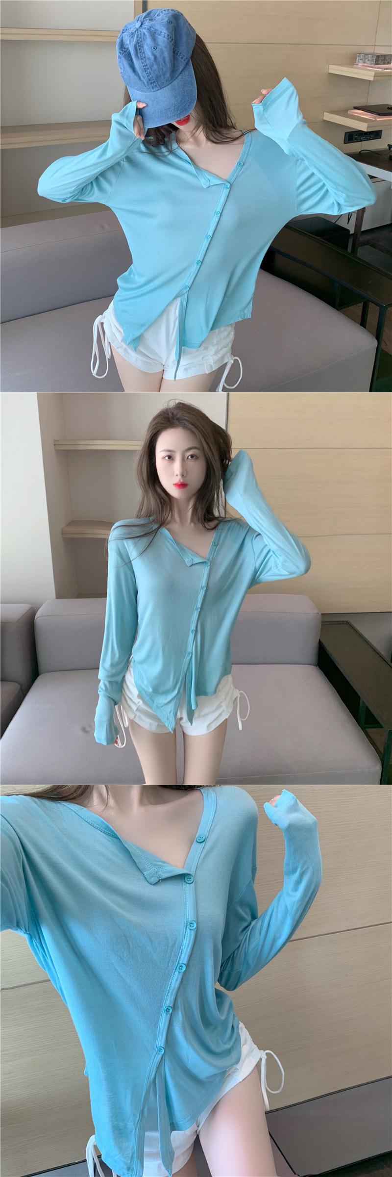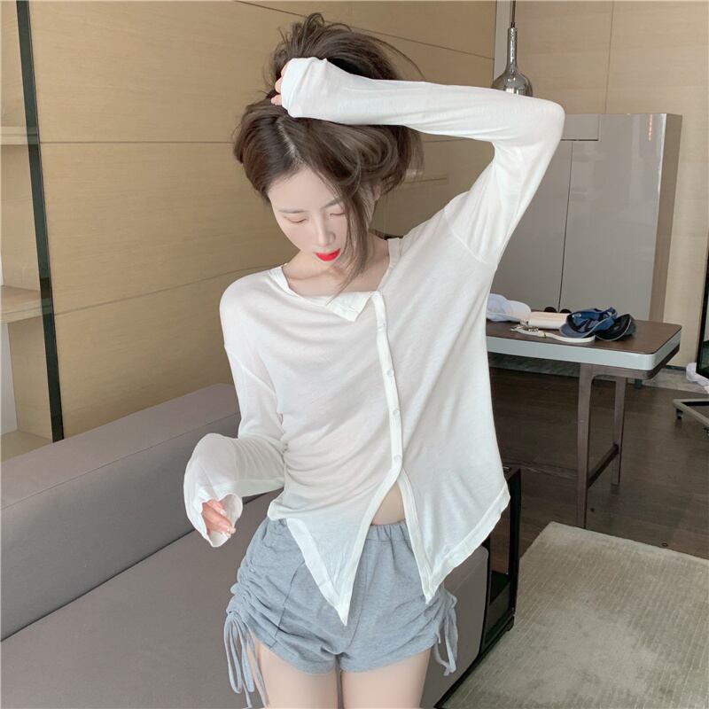 VネックTシャツ レディースサマールーズ薄手トップス ロング 夏物 ハンチェンe29728708251