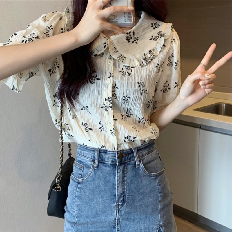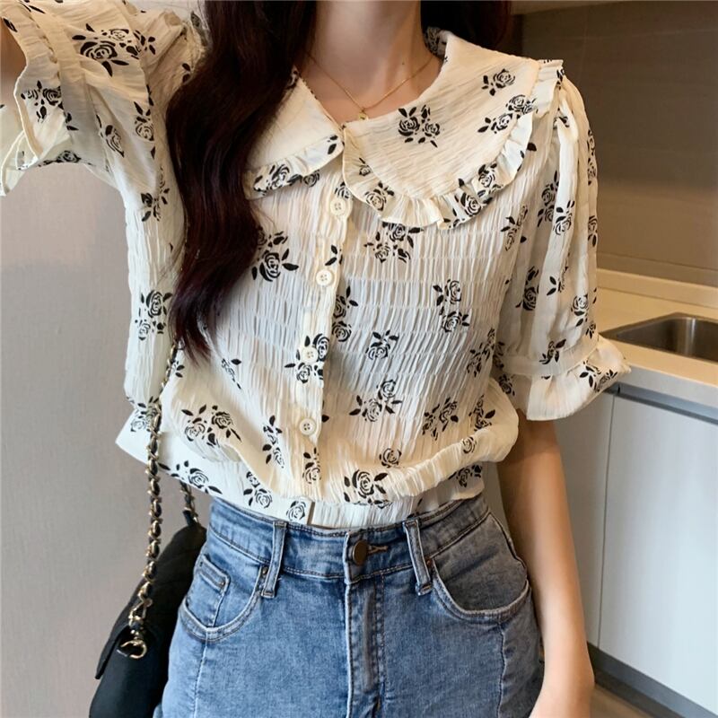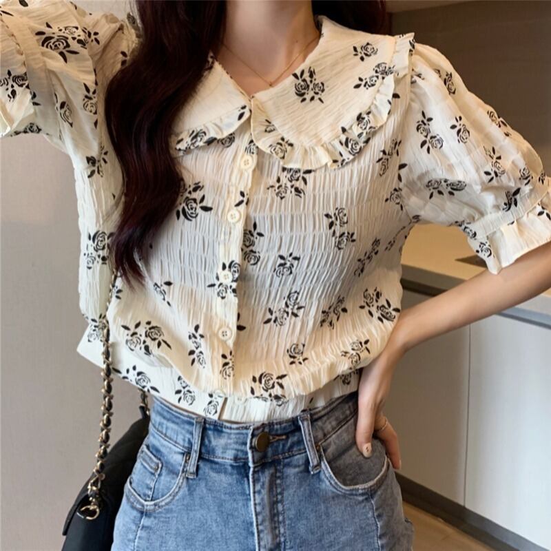 フローラルシャツ レディースサマースタイルスタンダードカラー薄手ブラウス レトロ 夏物 花柄 ハンチェンe81670526543