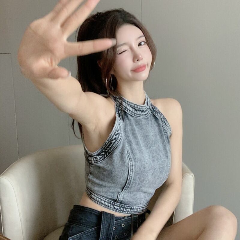 薄手ホルターノースリーブショートクロップトップ トップス ハンチェンe28659186761