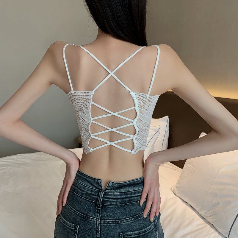 クロスバックサマーレースホルターショートブラウス レディース 夏物 ピュア ハンチェンe52732215657
