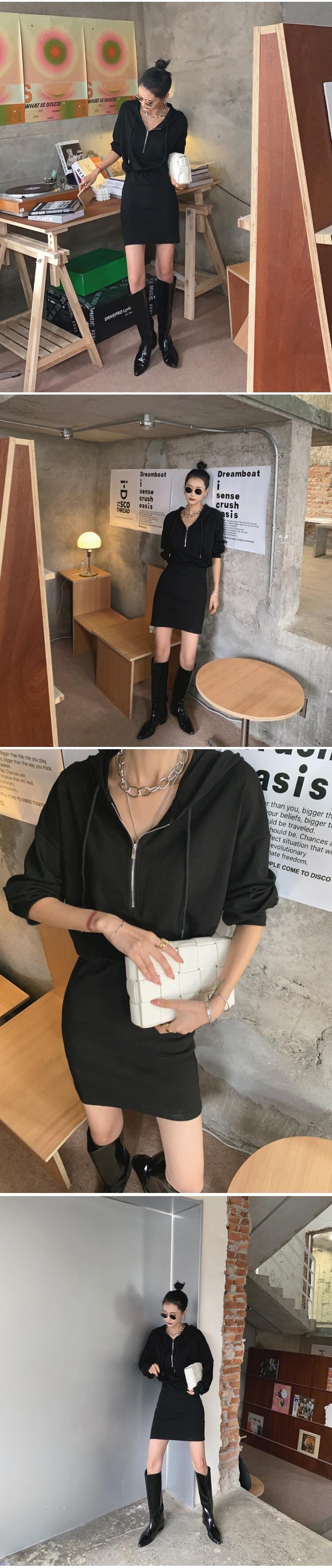 オータムスタイルフードグレーセーター ドレス ウェストギャザーレディース ロング 秋物 ハンチェンe76145020640