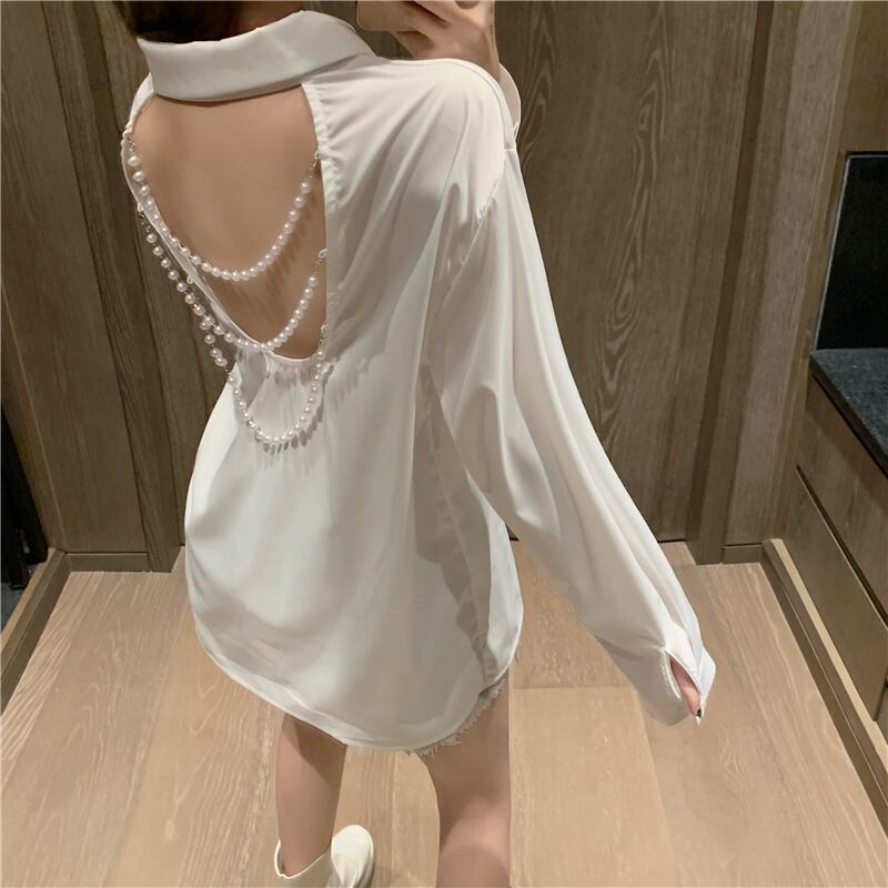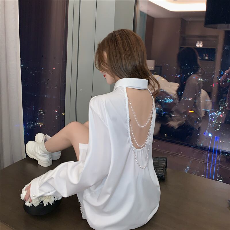 ホワイトシャツ オータムスタイルホルタートップス ロング 秋物 ハンチェンe54887419907