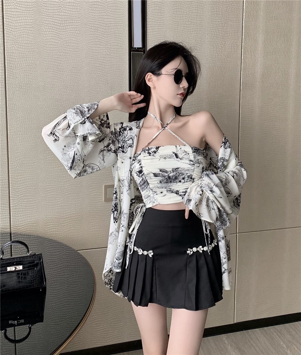 レッドスタンダードルーズシャツ トップス プリーツスカート オータムセット レトロ ストリート 秋物 ハンチェンe34156692683