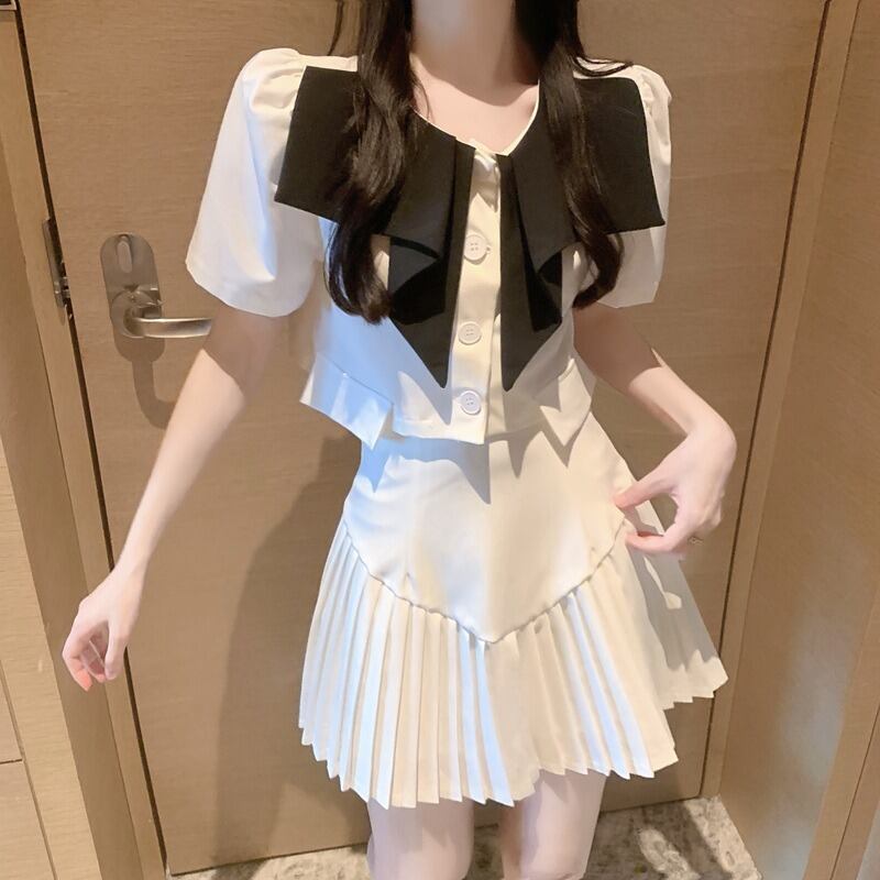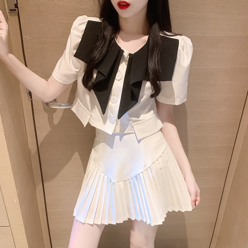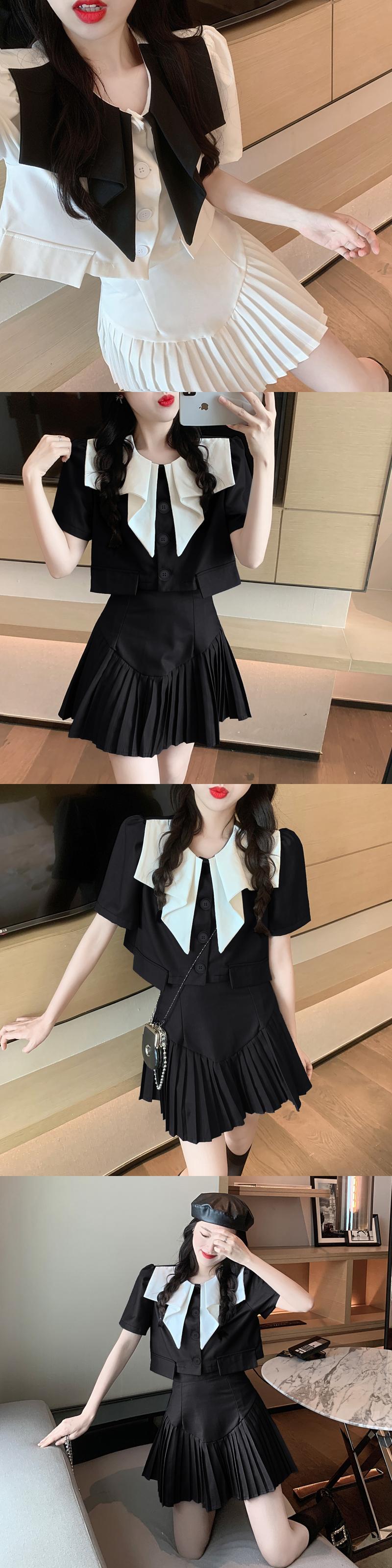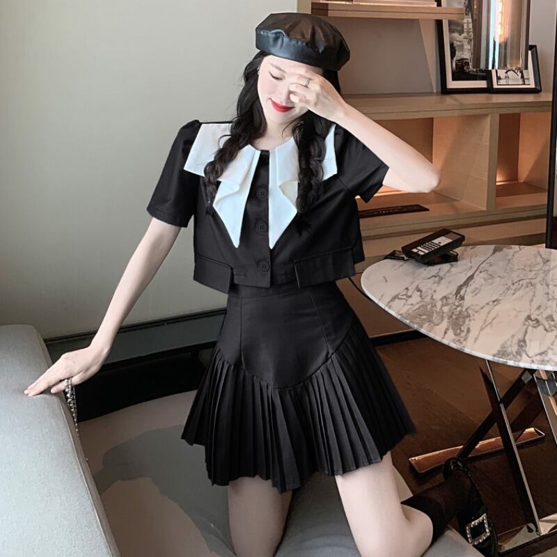 色:気質グレートップ,ホワイトトップ,テクスチャードブラックトップ,気質グレースカート,百の短いスカート,テクスチャード加工の黒いショートスカート