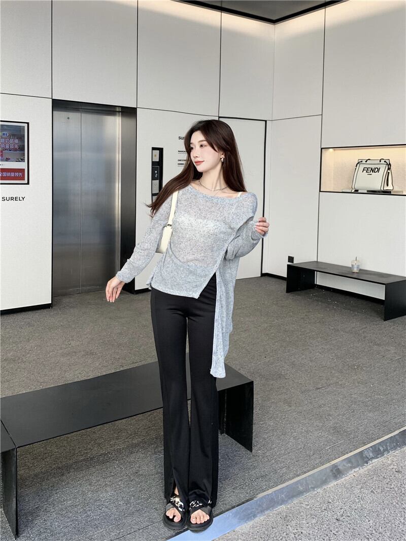 ボタンTシャツ オータム薄手ソリッド カラートップス ロング 秋物 ソリッドカラー ハンチェンe56341426353