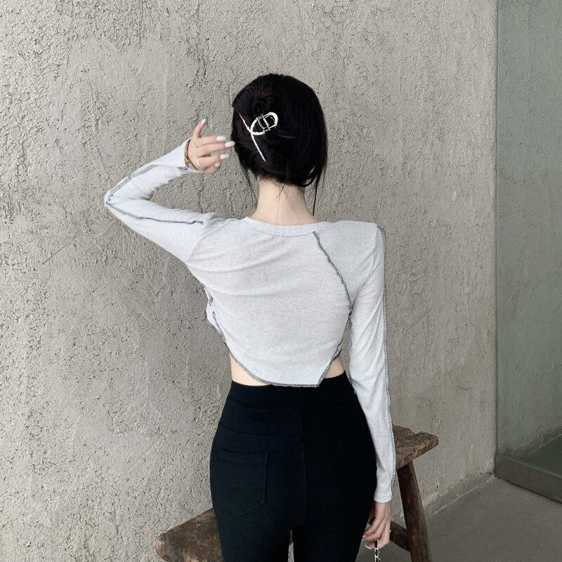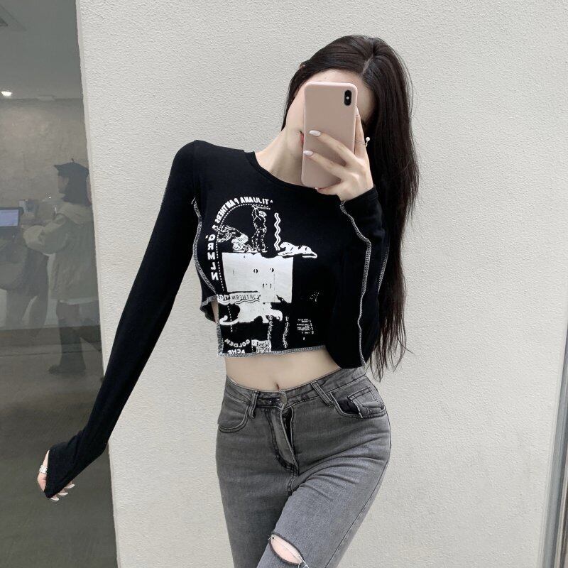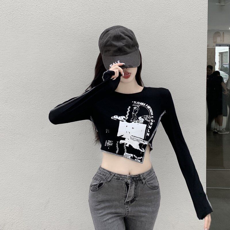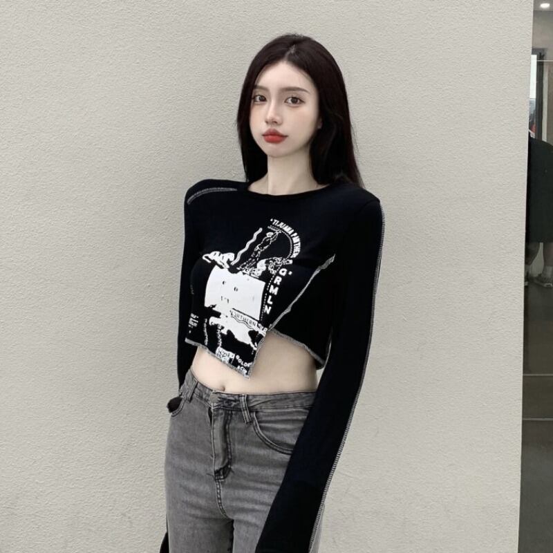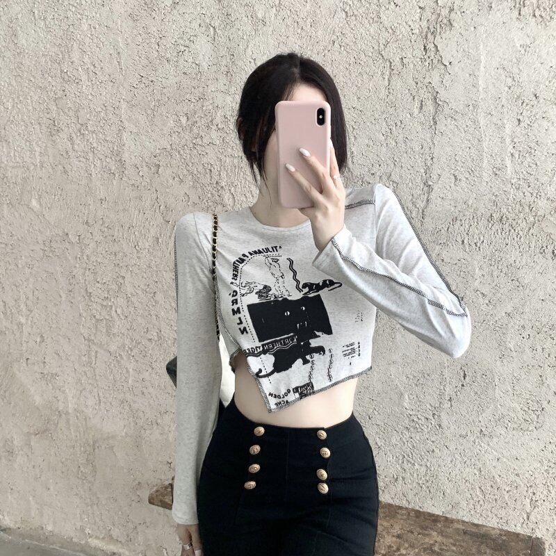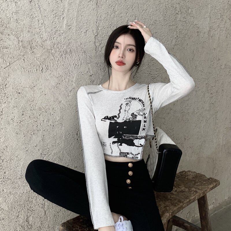 オータムプリントショートスリムTシャツ トップス ロング 秋物 ハンチェンe33501656872