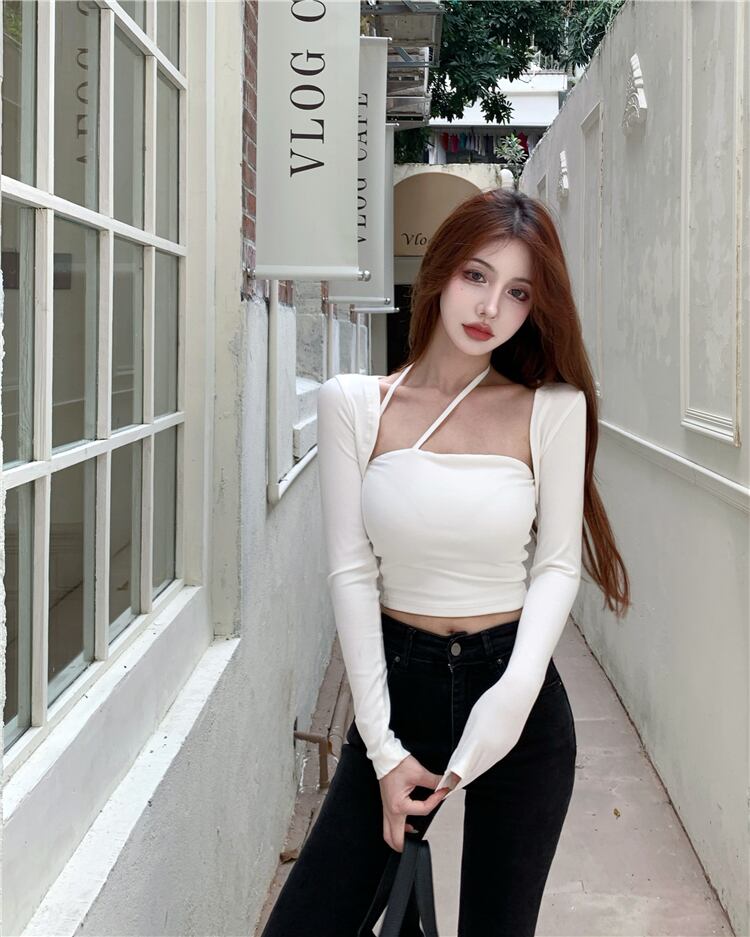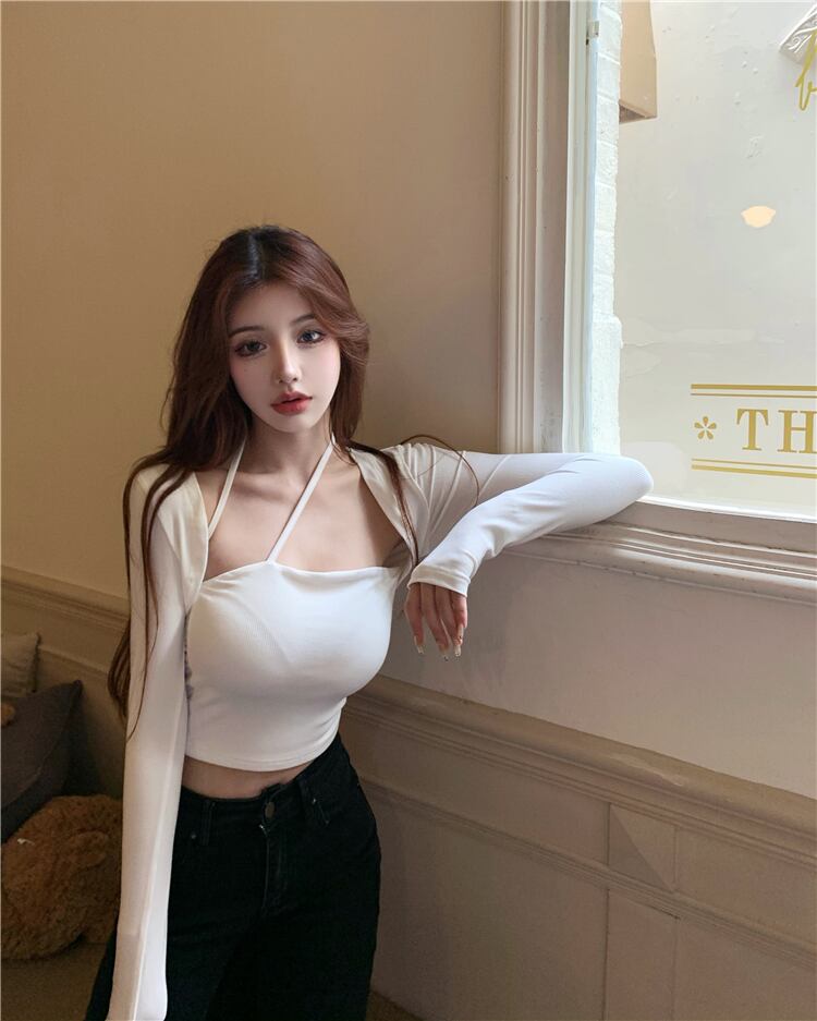ツーピーススタイルTシャツ オータムスリムショート 秋物 ハンチェンe68957430219