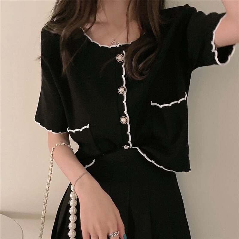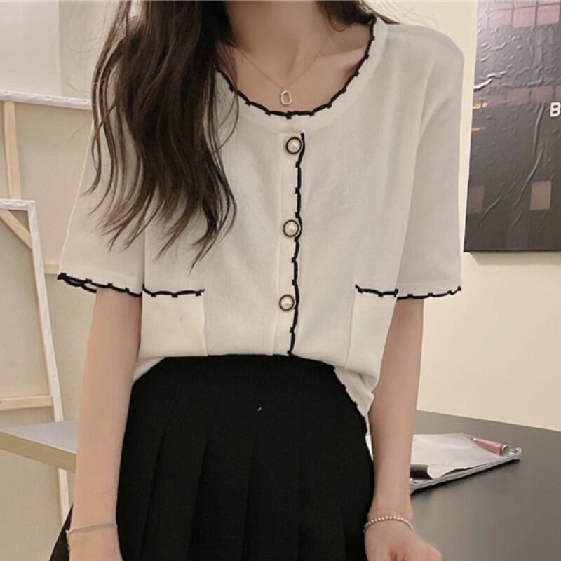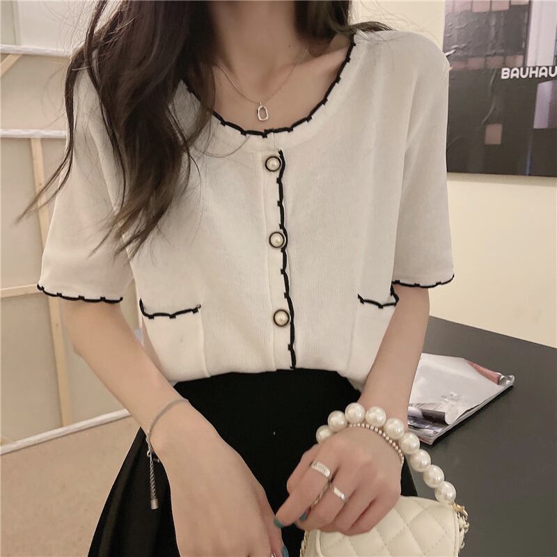 サマースタイルラウンドネック半袖スリーブルーズ薄手ニットカーディガンジャケット レディース ショート ハーフスリーブ 夏物 Oネック ハンチェンe64392277239