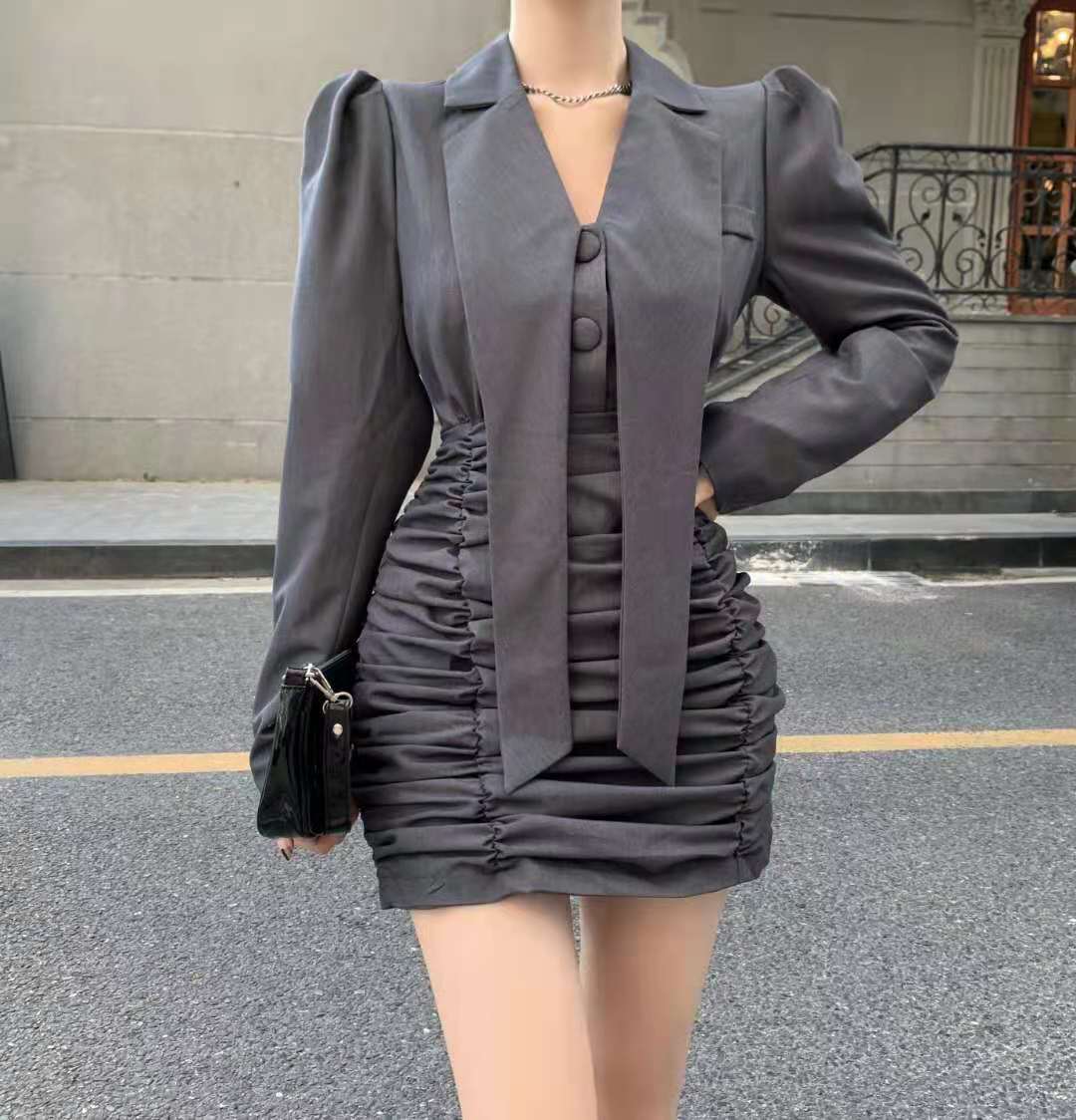 オータムスカート スタイルスリムプリーツドレス 秋物 ハンチェンe34720868724