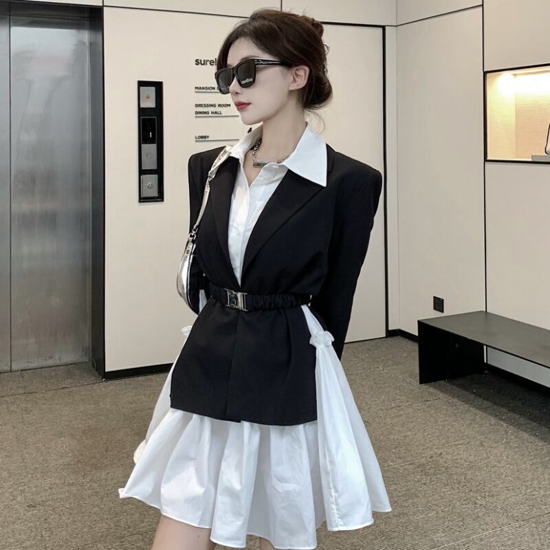 ウェストジャケット ルーズシャツ ドレス オータム ロング レース 秋物 レースアップ ハンチェンe49453088614