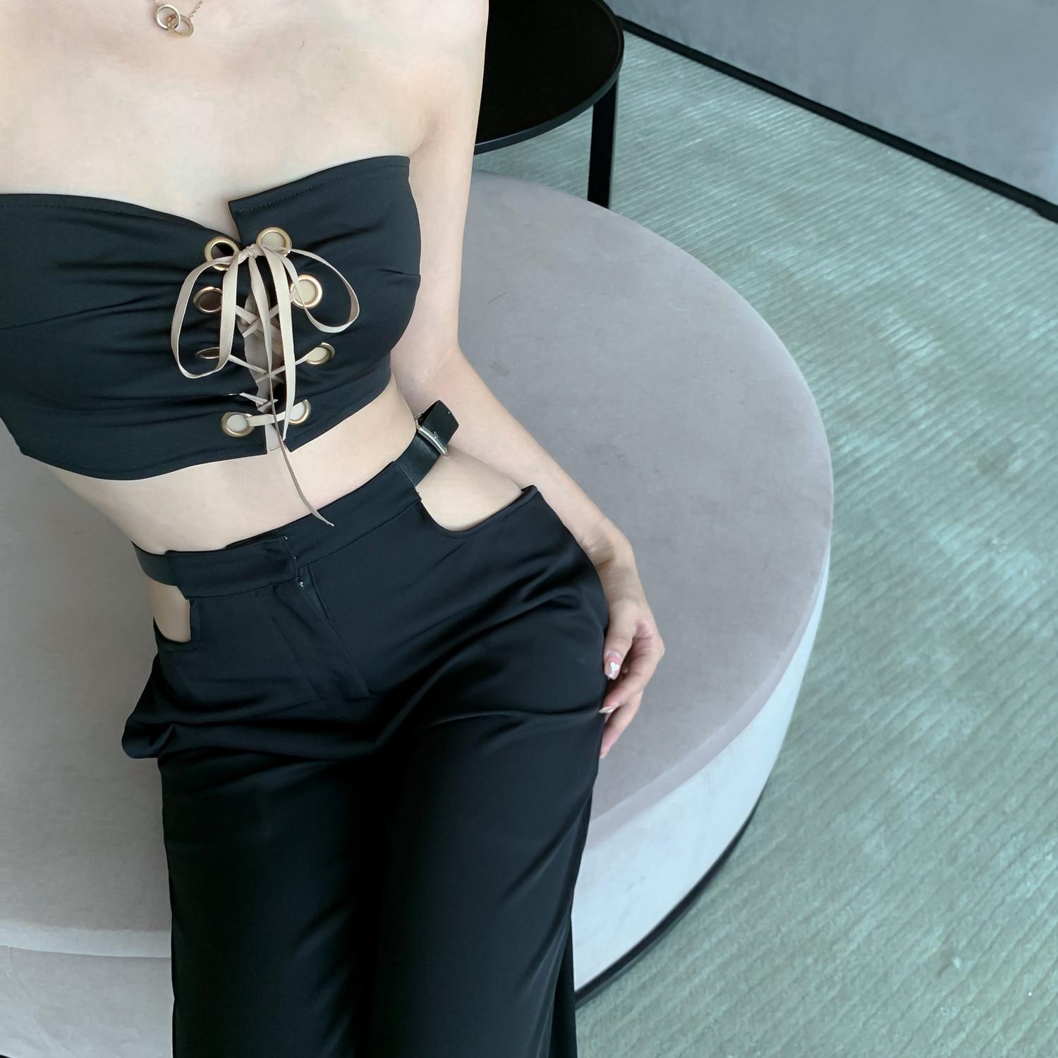 スタイルハイウェストウェストルーズカジュアルワイドレッグレディース ワイドパンツ ハンチェンe97297261451