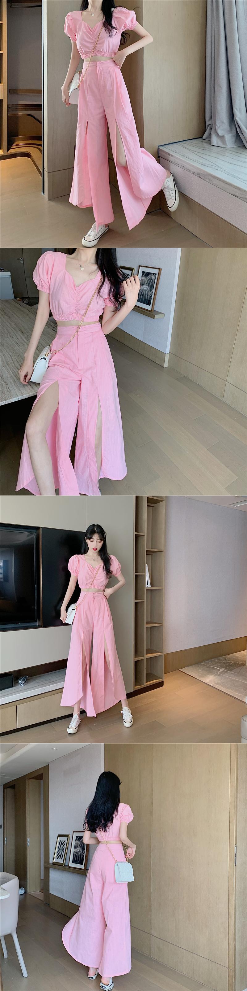 スタイルレディースサマープリーツトップス ワイドレッグパンツ 夏物 ワイドパンツ ハンチェンe2481865137