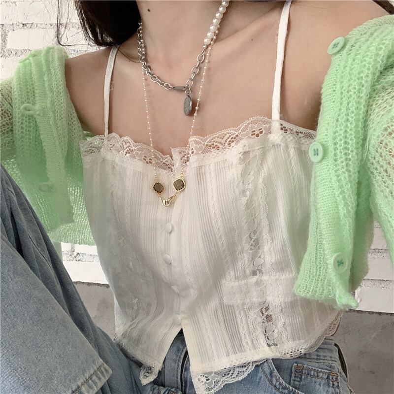 サマーレースノースリーブトップス 大人ガーリー スウィート キュート カジュアル 夏物 ハンチェンe97092710227