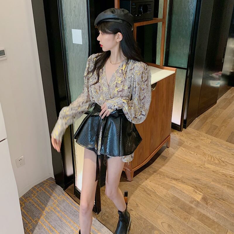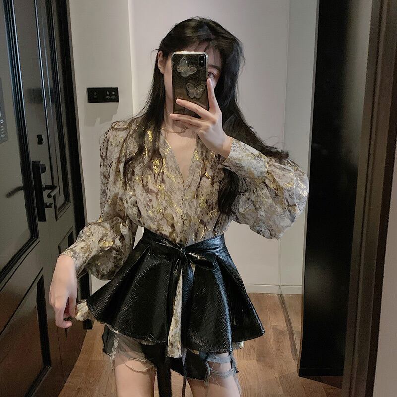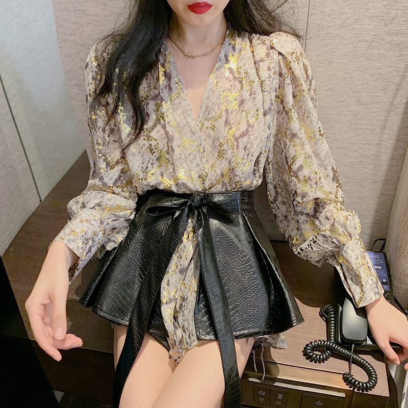 スタンダードスネークプリント柄シャツ レディースルーズ薄手ブラウス レトロ ハンチェンe34677953717