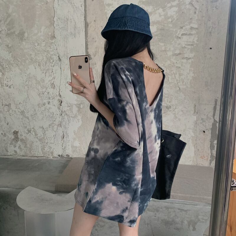Tシャツ サマースタイルバックチェーン ロングトップス 夏物 ハンチェンe84782461370