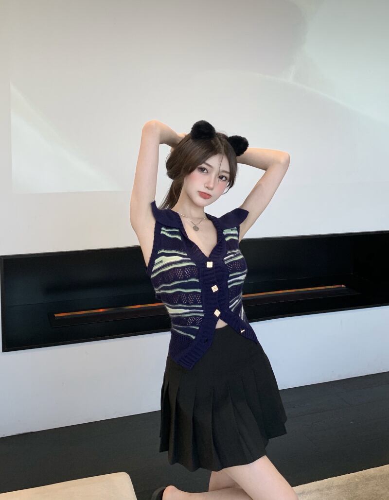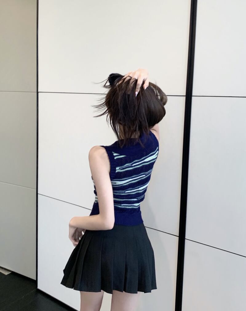 スタンダードスタイルVネックセーター カラーノースリーブトップス レディース レトロ ハンチェンe93176290373