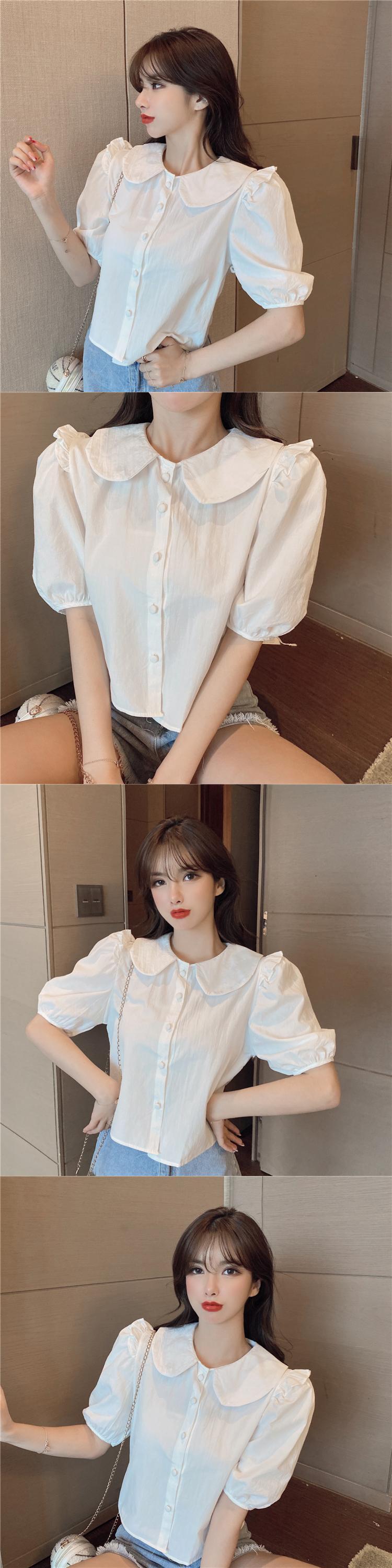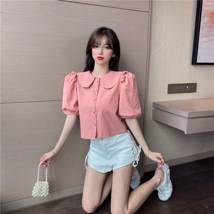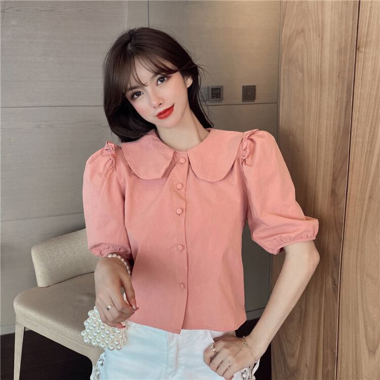 スリーブショートシャツ レディースサマースタイルカラースリムブラウス 夏物 ハンチェンe45143471255