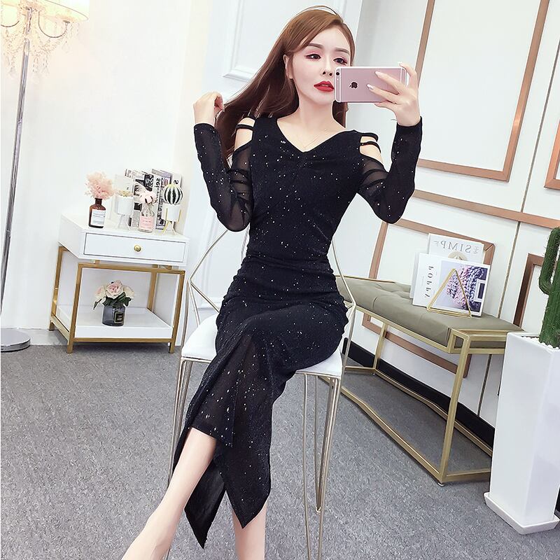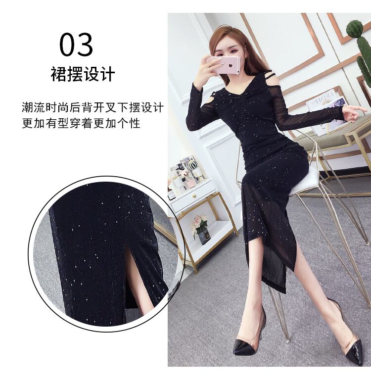 オータムストラップレスメッシュVネックウェストドレス レディース 秋物 ハンチェンe81624310860